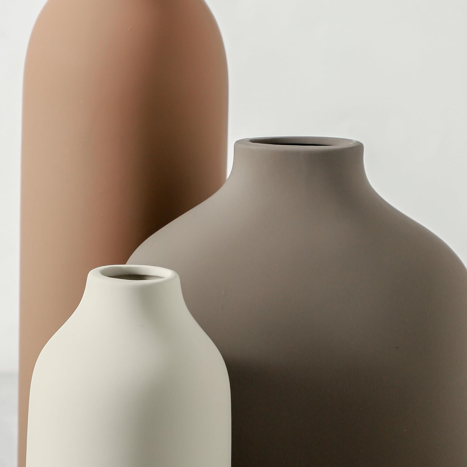- Masterful Ceramic Craftsmanship β This vase set of 3 is meticulously crafted from premium clay and fired at high temperatures for lasting durability. Featuring a corrosion-resistant surface, the vases also have a waterproof interior, making them ideal for holding fresh flowers and preserving their vibrancy. They also elegantly showcase artificial plants and dried flowers, adding a timeless charm to your home.
