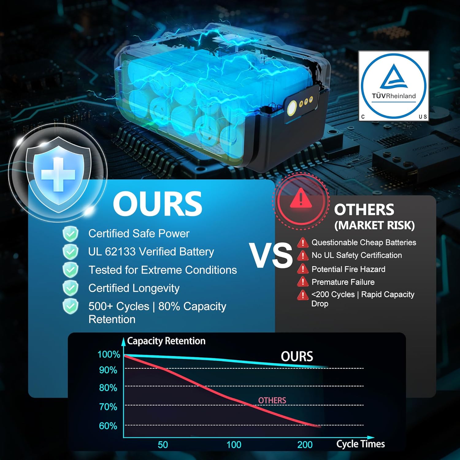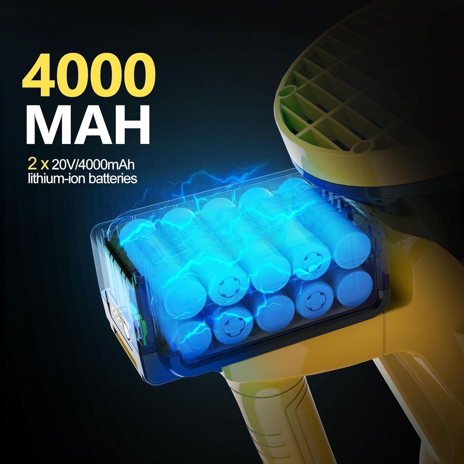 - Safety Certified Batteries with Unmatched Reliability: Includes two UL 62133 Certified rechargeable 4.0 Ah batteries, rigorously tested for fire, shock, and overcharge protection. Enjoy 90 minutes total runtime (45 min per battery on low speed) to power through larger tasks without interruptions.