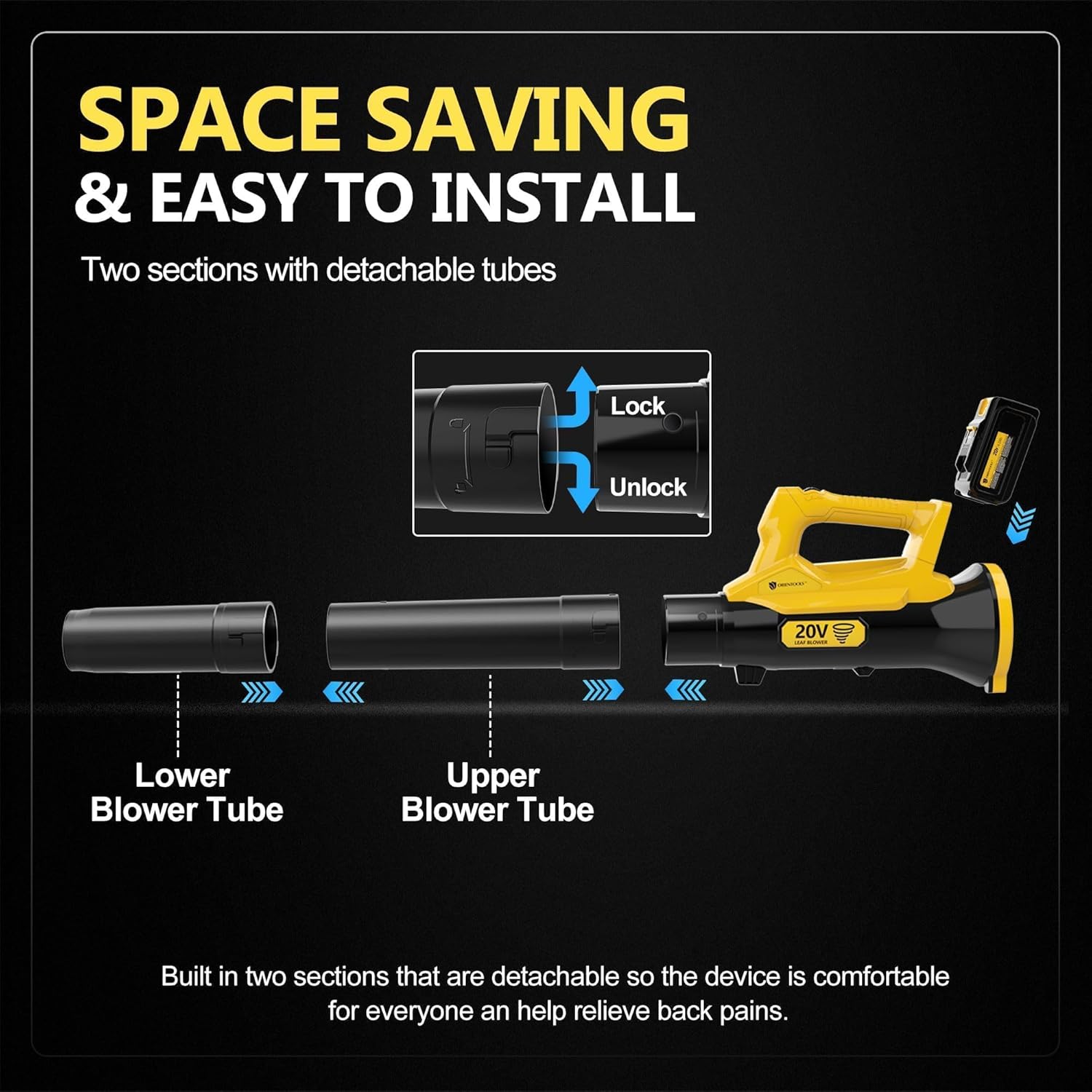 Orientools Leaf Blower Cordless, 20V Powerful Electric Cordless Leaf Blower 2×4.0 Ah Batteries & Charger, Variable Speed Trigger, Portable Lightweight Blowers for Lawn Care, Yard, UL 62133 Certified