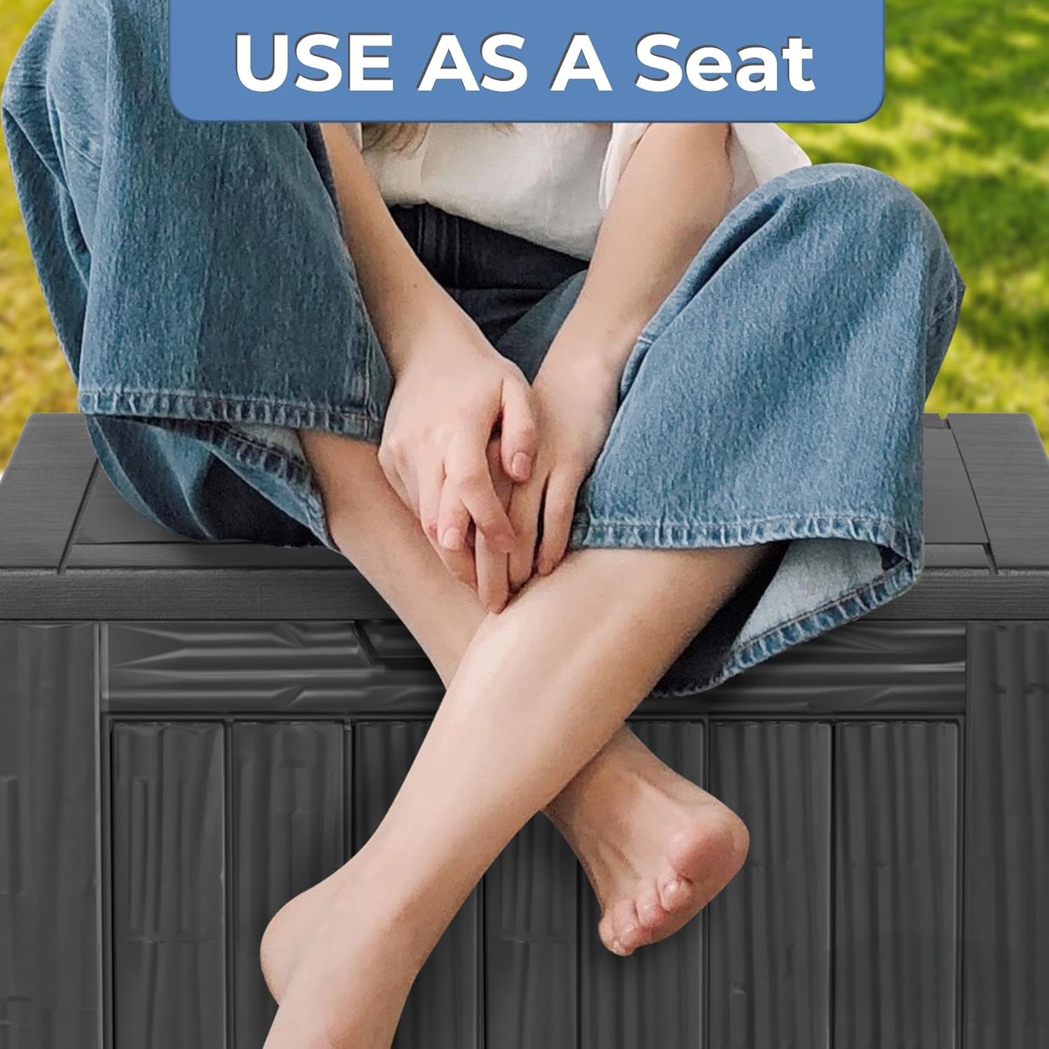- Weatherproof Resin for Year-Round Use. Durable, waterproof resin, this deck box resists rain, sun, and UV exposure. Ideal for all-season use, it won’t peel, rust, or warp like wooden or metal boxes—keeping your items protected outdoors.