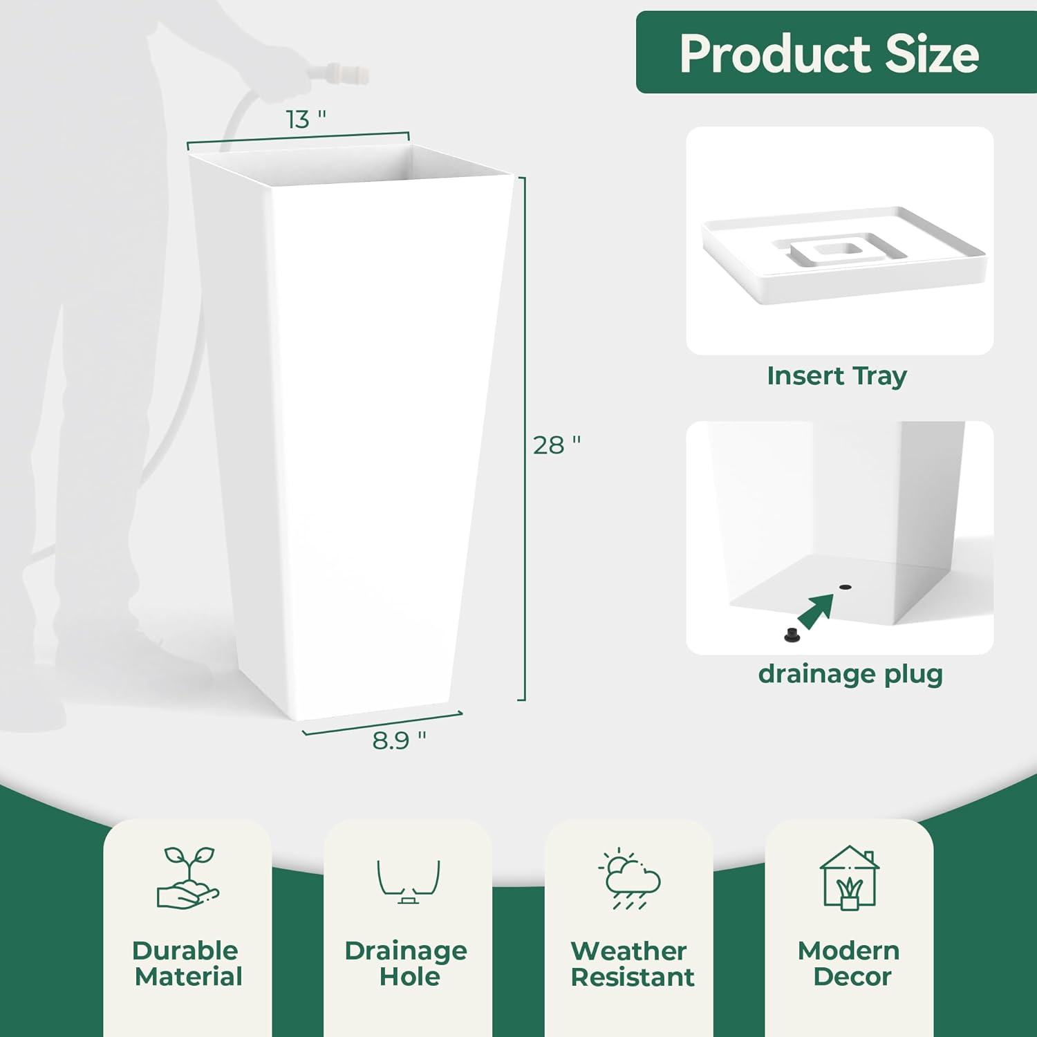 - Built-In Drainage System β Features a bottom drainage hole that prevents overwatering and promotes healthy root growthβgreat for flowers, small trees, herbs, or decorative greenery.