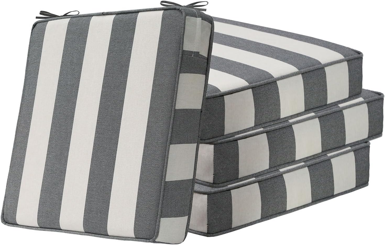 Square Corner Seat Cushions, 18.5" x 16" x 3", Set of 4, Indoor Outdoor Water Repellent Universal Chair Pads with Ties for Patio Furniture, Garden Deck Dining Chairs, Gray Stripe