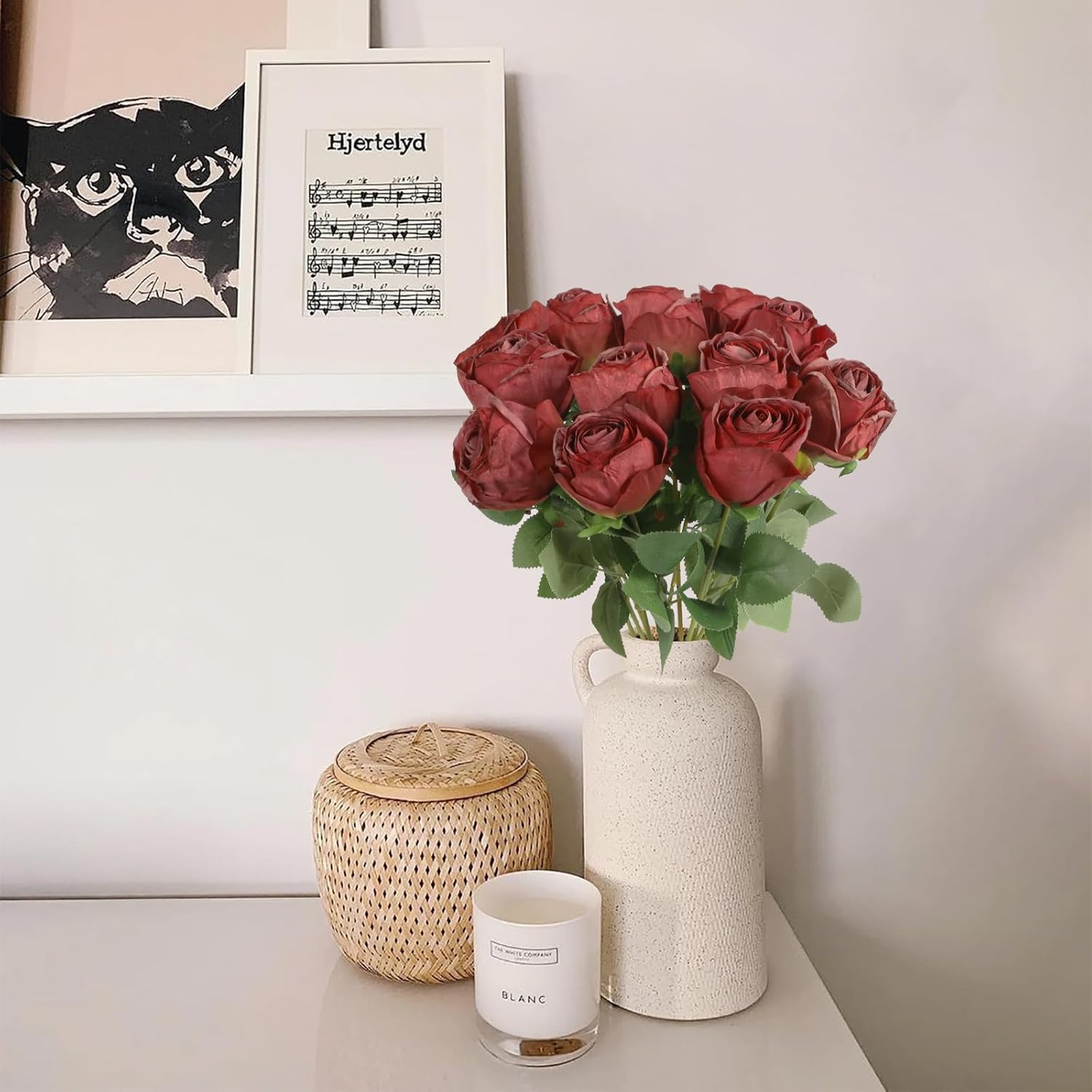 - Silk Roses with Vintage Charm: Lifelike artificial roses crafted from high-quality silk, featuring burnt-edge petals for a vintage dried flower charm. The delicate gradient hues of roses artificial flowers mimic naturally dried blooms, ideal for rustic or modern-style home decor