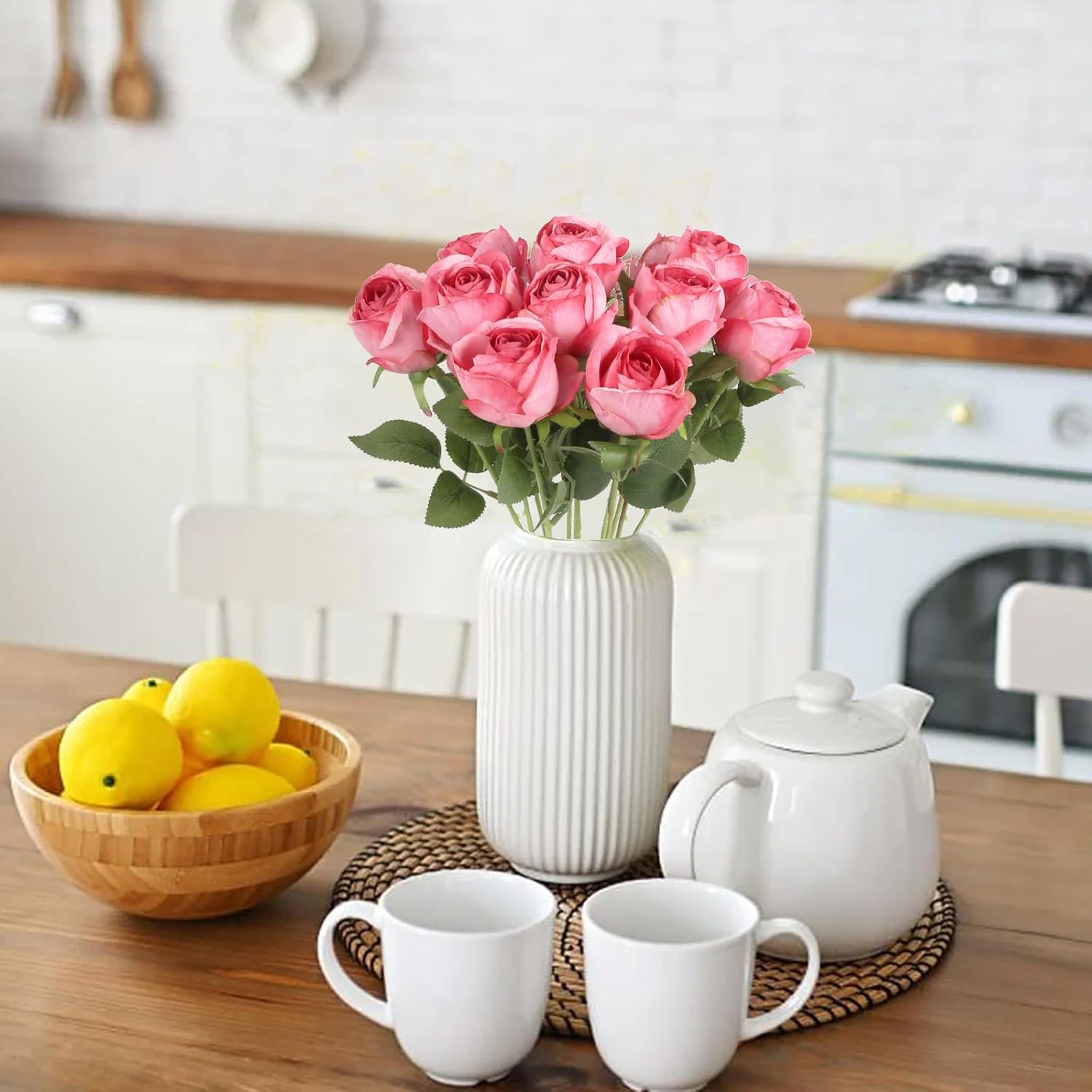 - Silk Roses with Vintage Charm: Lifelike artificial roses crafted from high-quality silk, featuring burnt-edge petals for a vintage dried flower charm. The delicate gradient hues of roses artificial flowers mimic naturally dried blooms, ideal for rustic or modern-style home decor