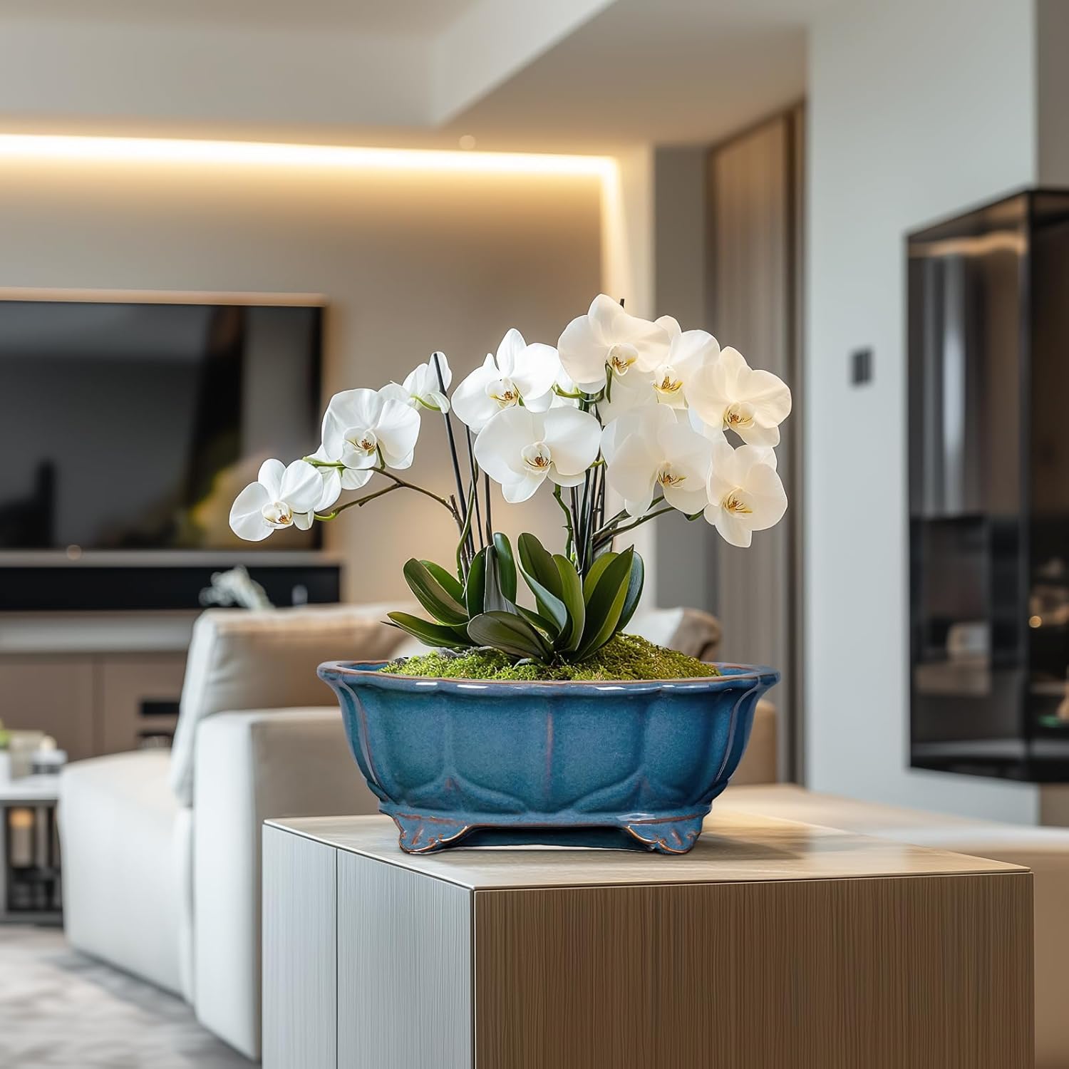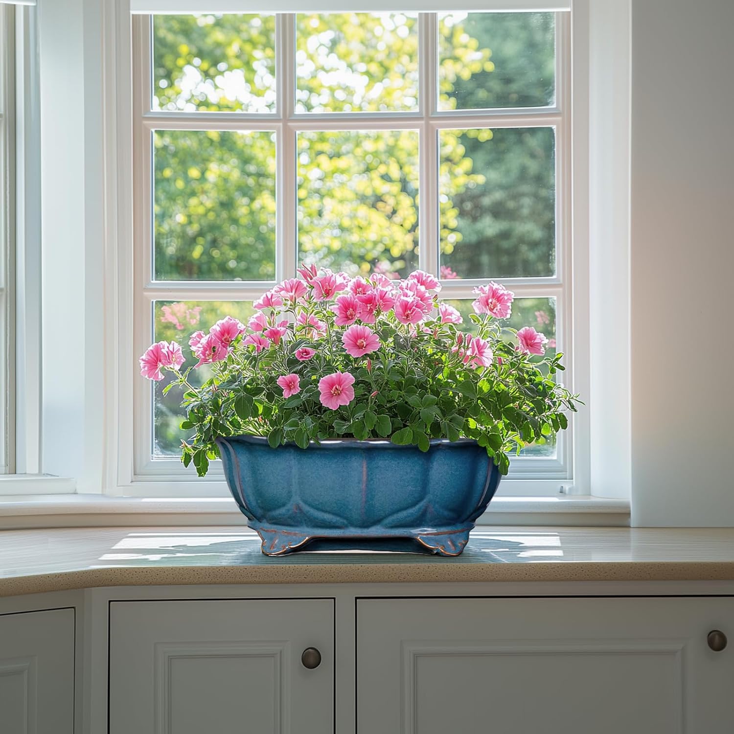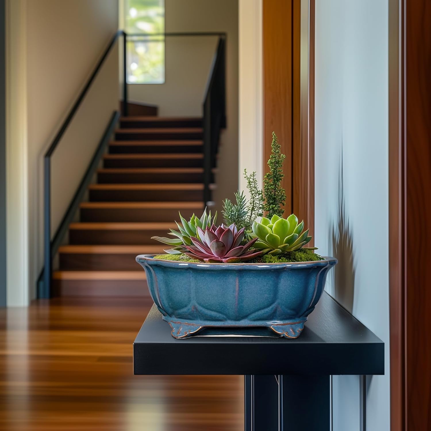 - Planter Design: Featuring a beautiful blue reactive glaze finish and elegant rectangluar appearance, this bonsai pots combines practicality with beauty, suitable for table, desk, windowsill, shelves, living room, bedroom, bathroom, porch, study, office, patio, balcony, zen garden, any indoor or outdoor space
