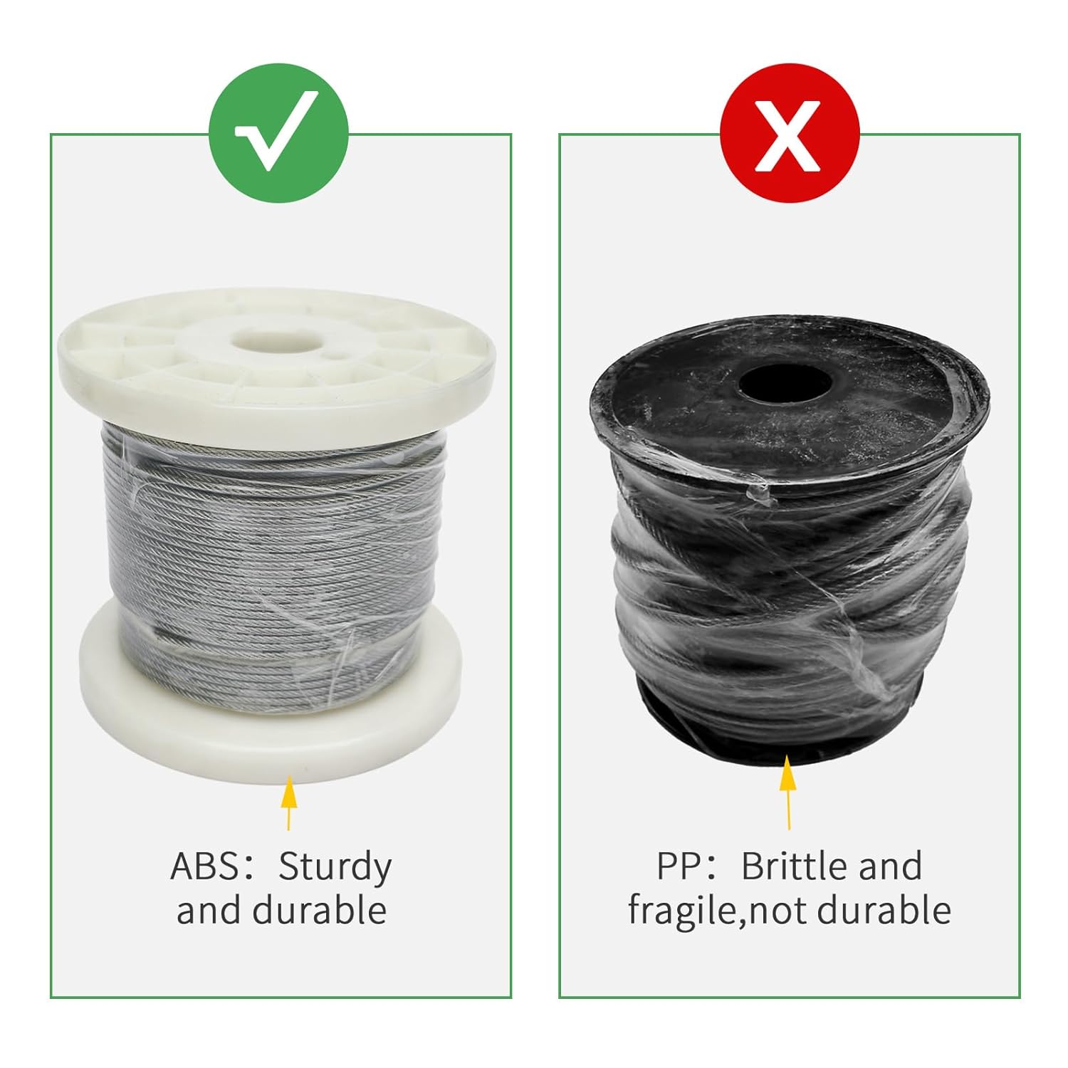 - 【Superior strength and durability】: The wire rope is made of 304 stainless steel, the wire cable structure is 7X7, with nylon coating on the surface to make it smooth, it is also insulated, rust-proof, corrosion-resistant, and withstands any harsh weather conditions such as strong sunlight and heavy rain.