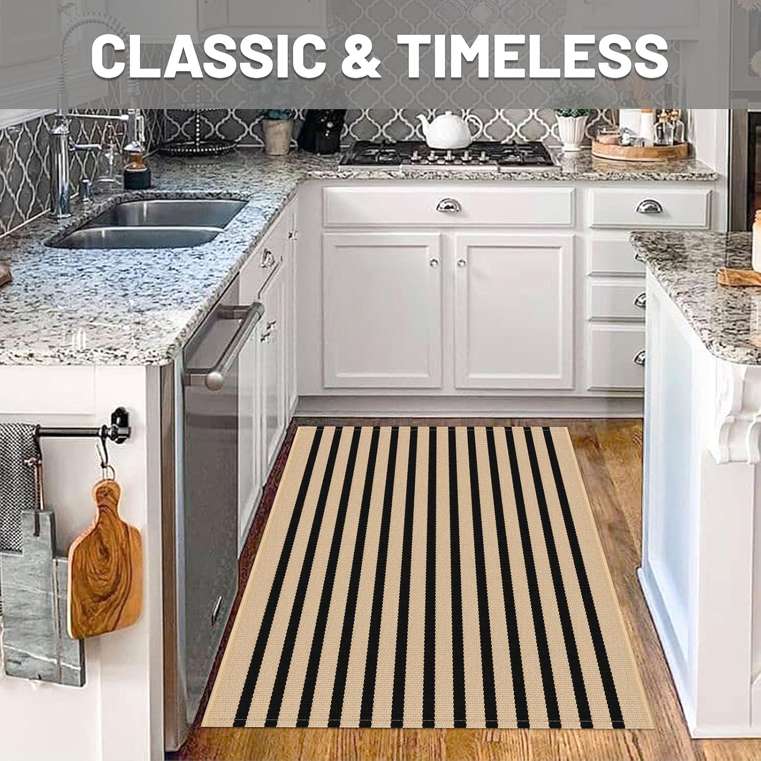 - Easy to Clean: This tan and black striped rug is simple to maintain with machine wash or vacuuming to remove dirt. The rug is sturdy and can be tumble dried on low. Keep your door rug fresh and clean with minimal effort. NOTE: Cotton rugs normally shrink slightly after washing