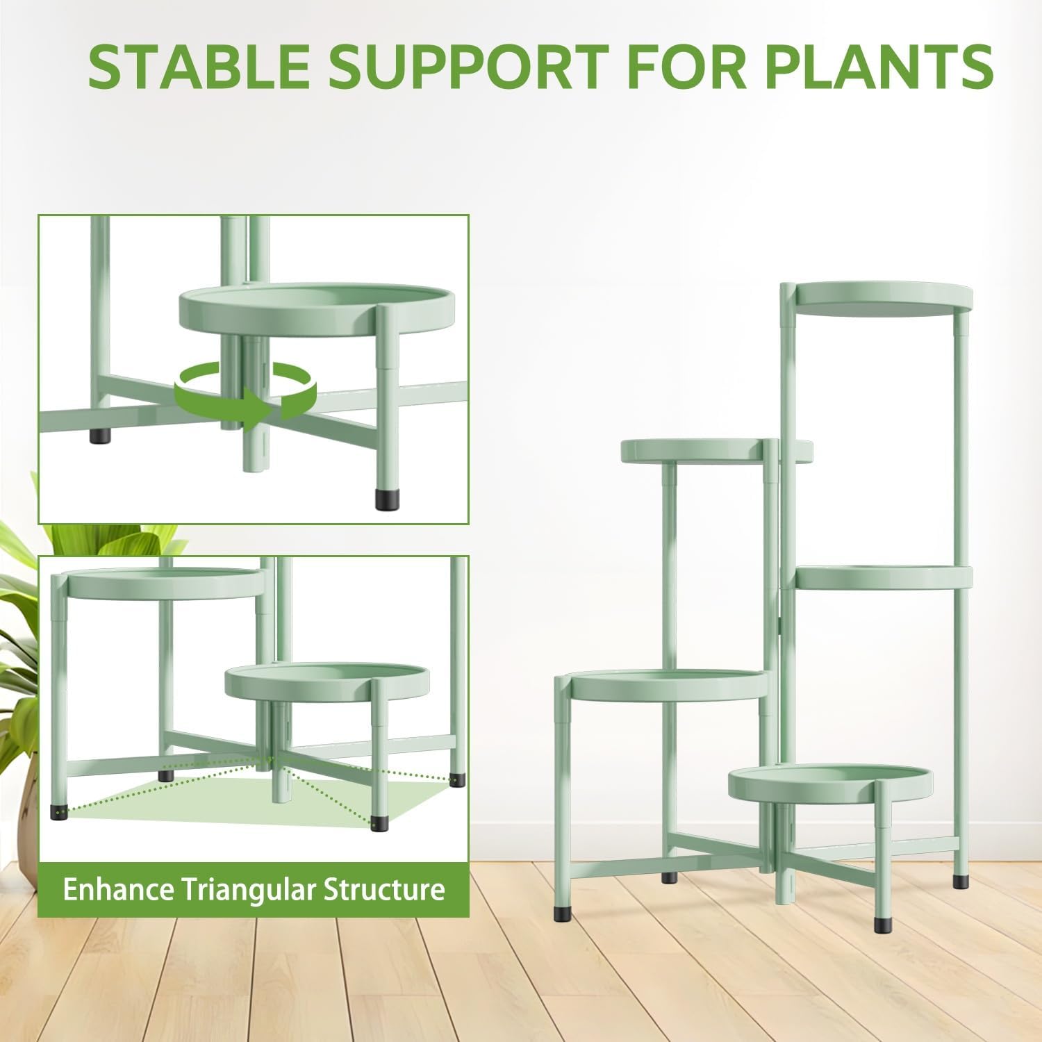 - Easy to Assemble Flower Shelf: This plant stand indoor tall can be easily assembled in less than 5 minutes without the use of any tools. The plant holders indoor stand's ground-contact feet are equipped with protective rubber foot pads that enhance stability while protecting the ground from iron scratches