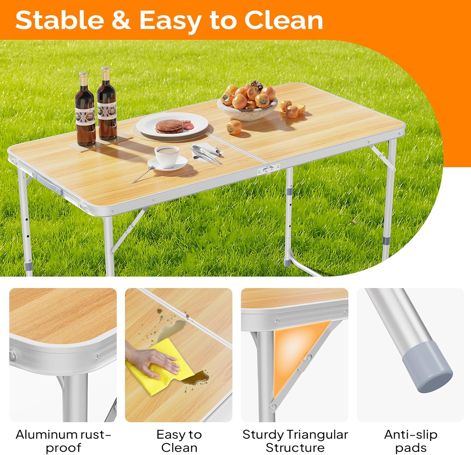 - MULTIPURPOSE TABLE: The foldable table is universal . Perfect for outdoor and indoor activities, camping, picnic, hiking, fishing, Dining, BBQ, party, travel, gathering, concert, sports, event.