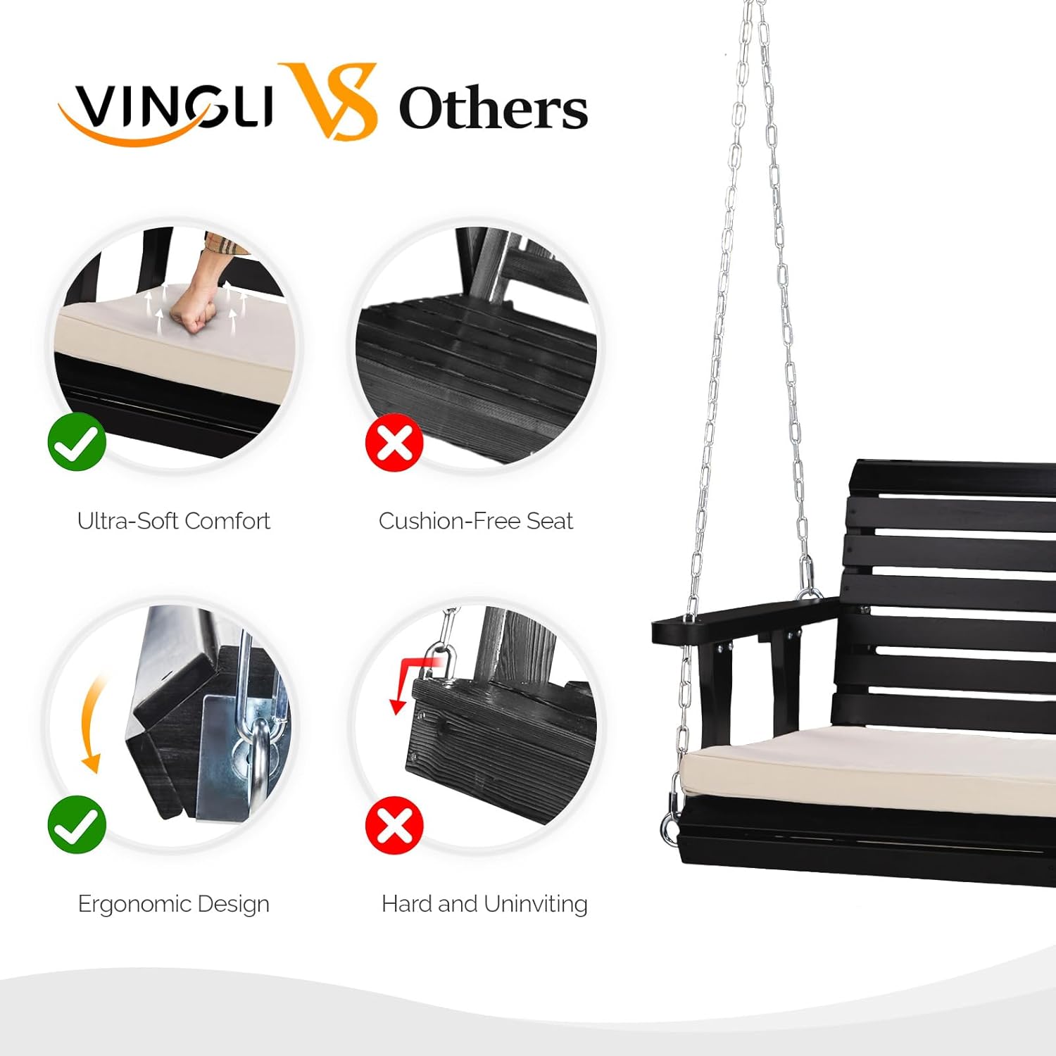 VINGLI Outdoor 4 FT Porch Swing, Heavy Duty 880 LBS Wooden Patio Swings with Cushions, Farmhouse Style Hanging Bench with Adjustable Chains for Yard | Garden | Lawn | Balcony, Black
