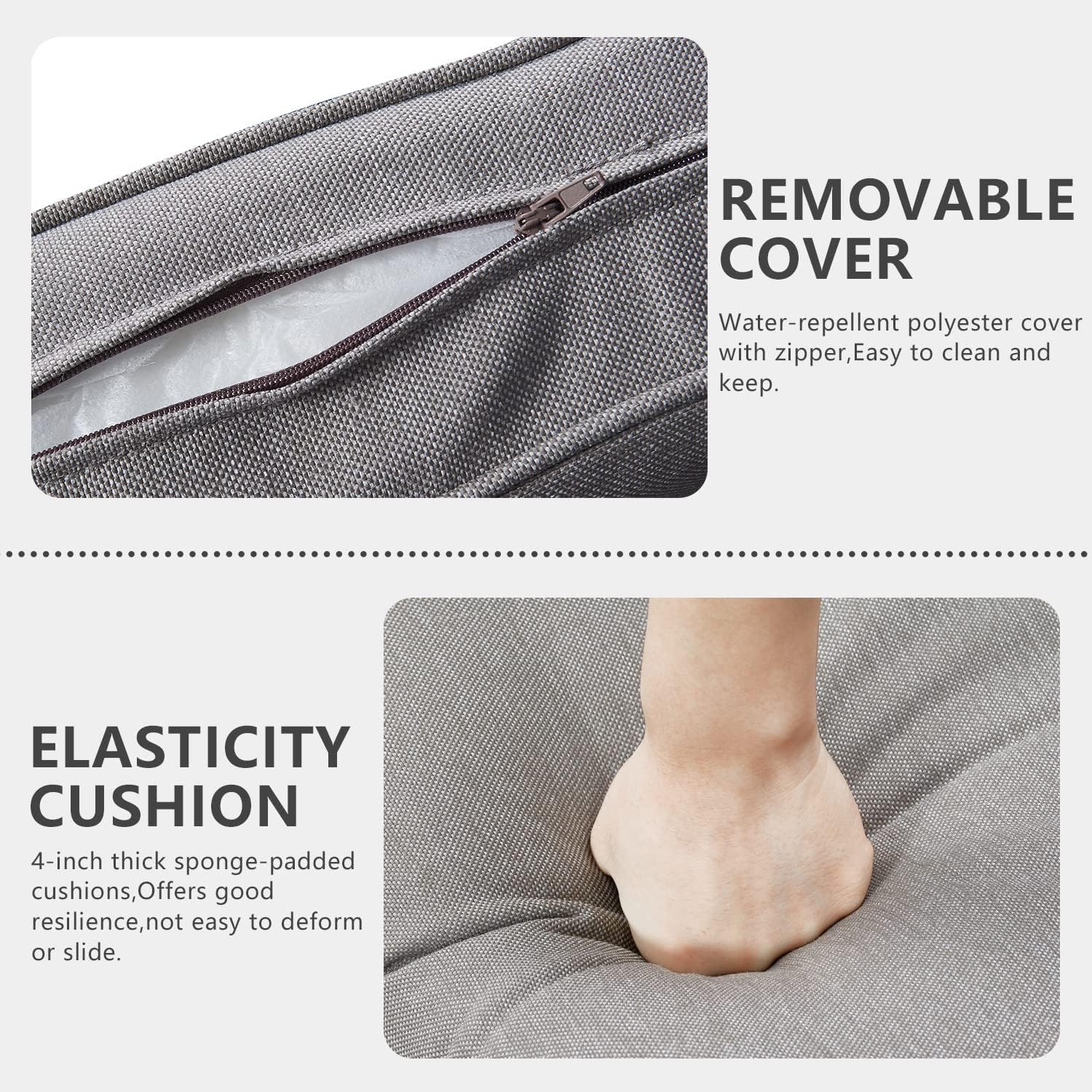 - 【Comfortable 4.5'' Thick Cushions】This garden furniture set features deep and wide seats with 4-inch thick sponge-padded cushions.Offers good resilience, not easy to deform or slide, also protect your lumbar and offer a comfortable sitting experience,Water-repellent polyester cover with zipper,Easy to clean and keep.