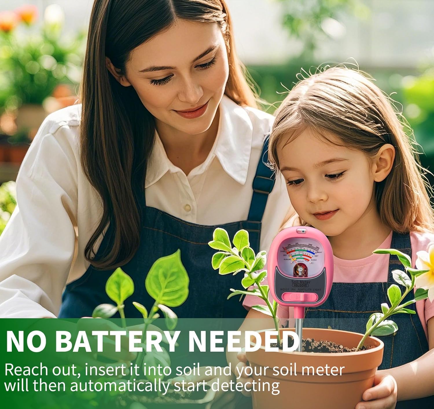 - 4 METER IN 1 COMPREHENSIVE GUIDANCE - 4-in -1 soil test kit with soil moisture meter/soil pH meter/nutrient/sunlight meter. It can meet your needs for measuring soil pH, soil nutrients, sunlight&soil moisture level with a single button. The accurate results can be displayed clearly on the oversized dial immediately. Provides precise care guidance for plants to thrive, based on soil test results for soil moisture/soil pH. Larger and clearer dial, easy to use