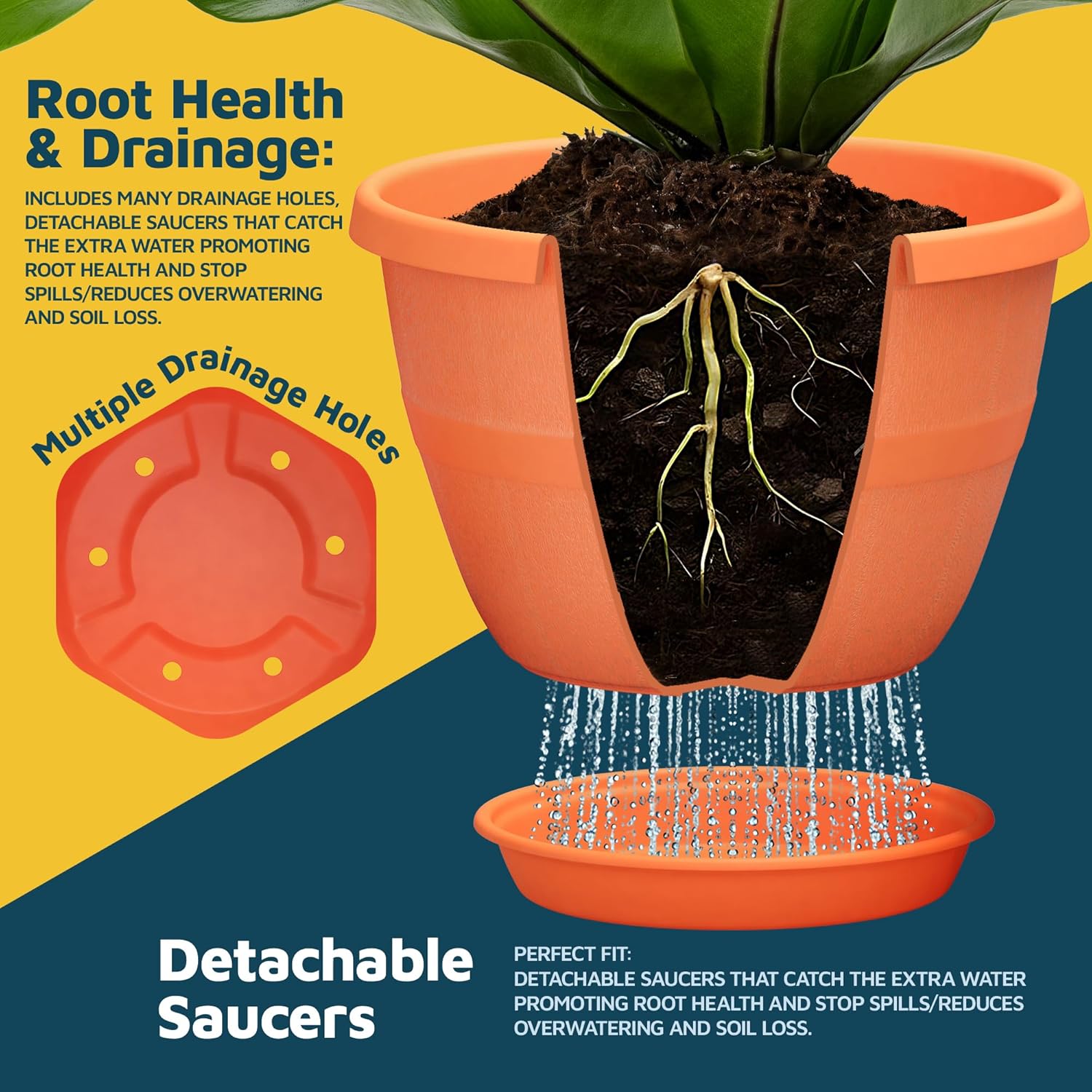 - Drainage & Saucer Included – Say goodbye to waterlogged plants! Each planters features a built-in drainage hole to prevent overwatering and a matching saucer to catch excess water—keeping your space neat and your plants healthy.