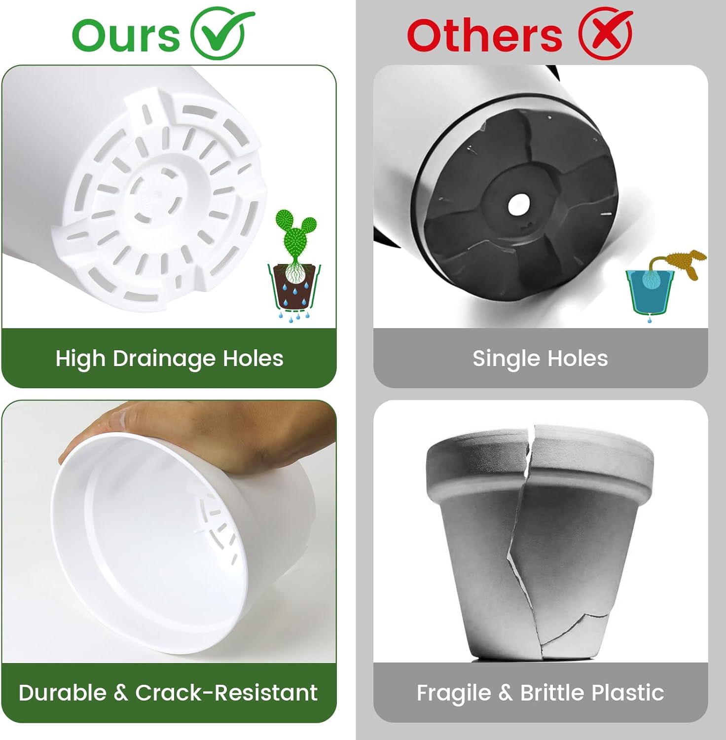 - [Versatile for Homes, Offices, and DIY Projects] Perfectly suited for growing seedlings, propagating cuttings, or organizing indoor herb gardens. These plastic pots for plants also work well for classroom science projects, DIY gifts, and small event dรฉcor, serving as functional white planters for indoor plants.