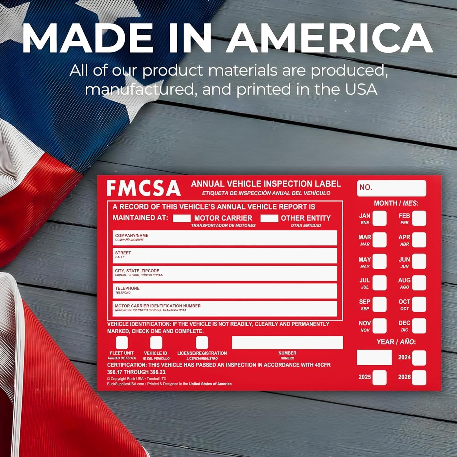 100 Pack Buck Aluminum Annual Vehicle Inspection Label with Punch Boxes, 2 Mil Red FMCSA Self Adhesive Sticker, DOT Compliant, Weatherproof, Tear Resistant, Easy to Write On, 6" x 3.5" - Made in USA