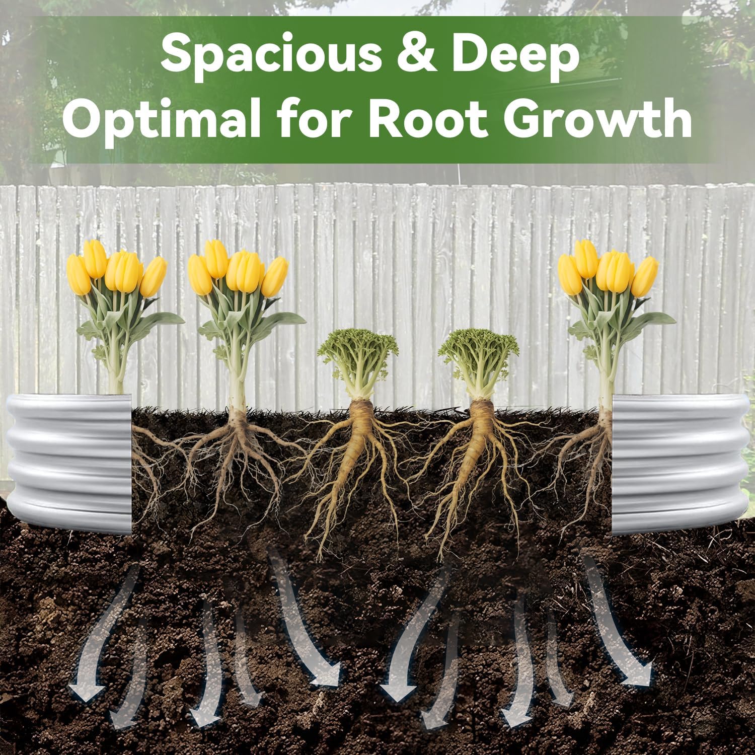 - 【Spacious Raised Bed for Plants & Vegetables】garden beds outdoor With ample planting space, our raised garden beds outdoor are ideal for growing everything from tomatoes and peppers to fragrant herbs and flowers.The raised bed design maximizes planting capacity, making it an ideal solution for gardening enthusiasts who want to grow medium to deep-rooted plants such as broccoli, beans,watermelon, sweet potato, pumpkins and more.