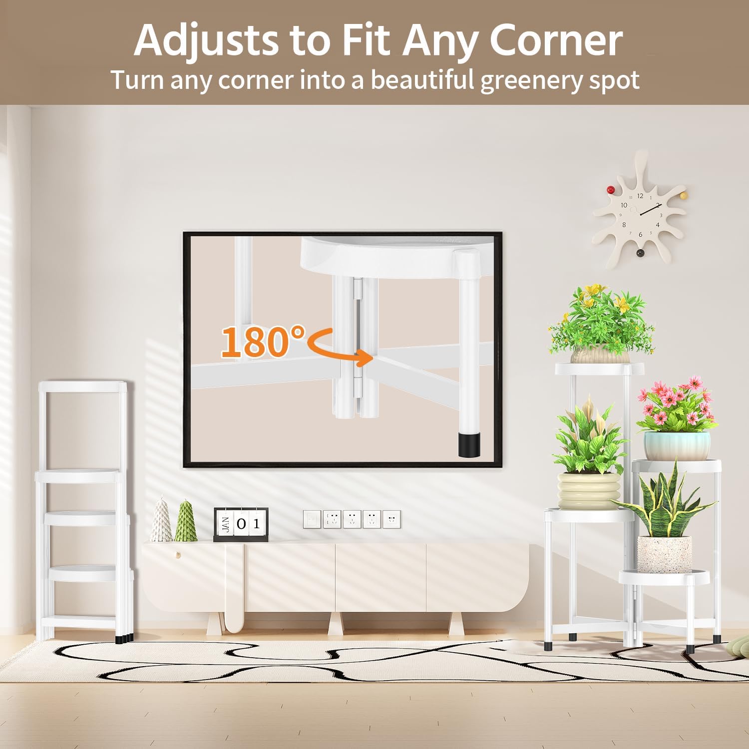 - 【Adjusts to Fit Any Corner】Struggling with awkward corners or tight spaces? Unlike rigid plant stand tall that demand perfect square footage, our stand’s legs effortlessly rotate and adjust to your space’s unique shape—perfectly aligning with corners and uneven walls for a snug, balanced fit.
