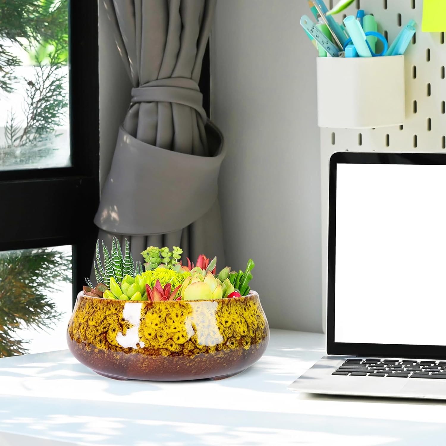 - 【Modern Design】The large succulent pot is made of rich ceramic by baking in high temperature, beautiful shallow planter with smooth finishing, this succulent planter pot is durable enough for long use