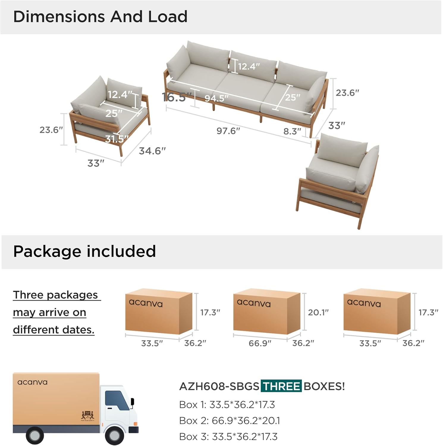 - Product Dimensions : 33"D x 97.6"W x 23.6"H