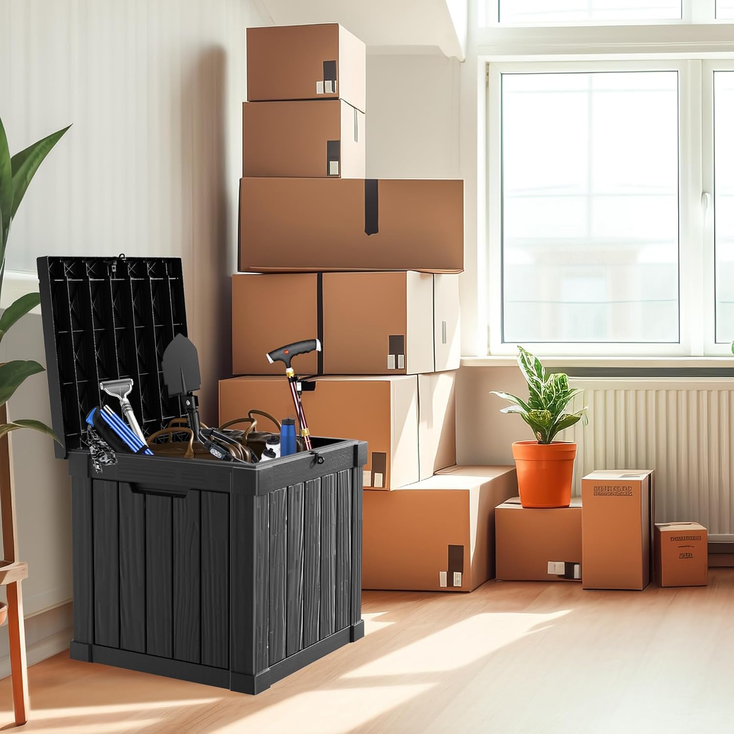 - TRANSFORM YOUR SPACE: Whether used indoors as a laundry storage solution or outdoors for patio items like cushions, garden tools, this patio storage box excels. Its multi-functional design makes it suitable as a side table, patio seat, storage bench, or footstool