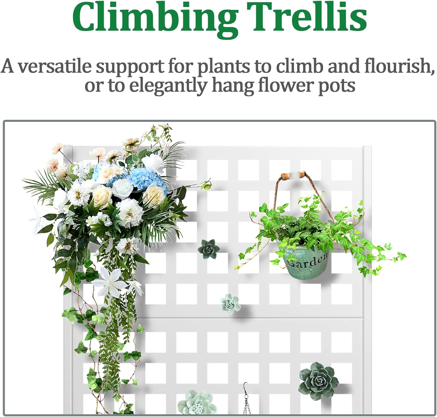 - Space-Saving Design: The planter box is combined with the trellis to offer a space-efficient and visually appealing gardening solution. The vertical design of the trellis optimizes planting space while preserving a compact footprint. The outdoor raised garden bed’s upright structure is perfect for those with limited space to create a charming garden on a terrace or in a small yard.