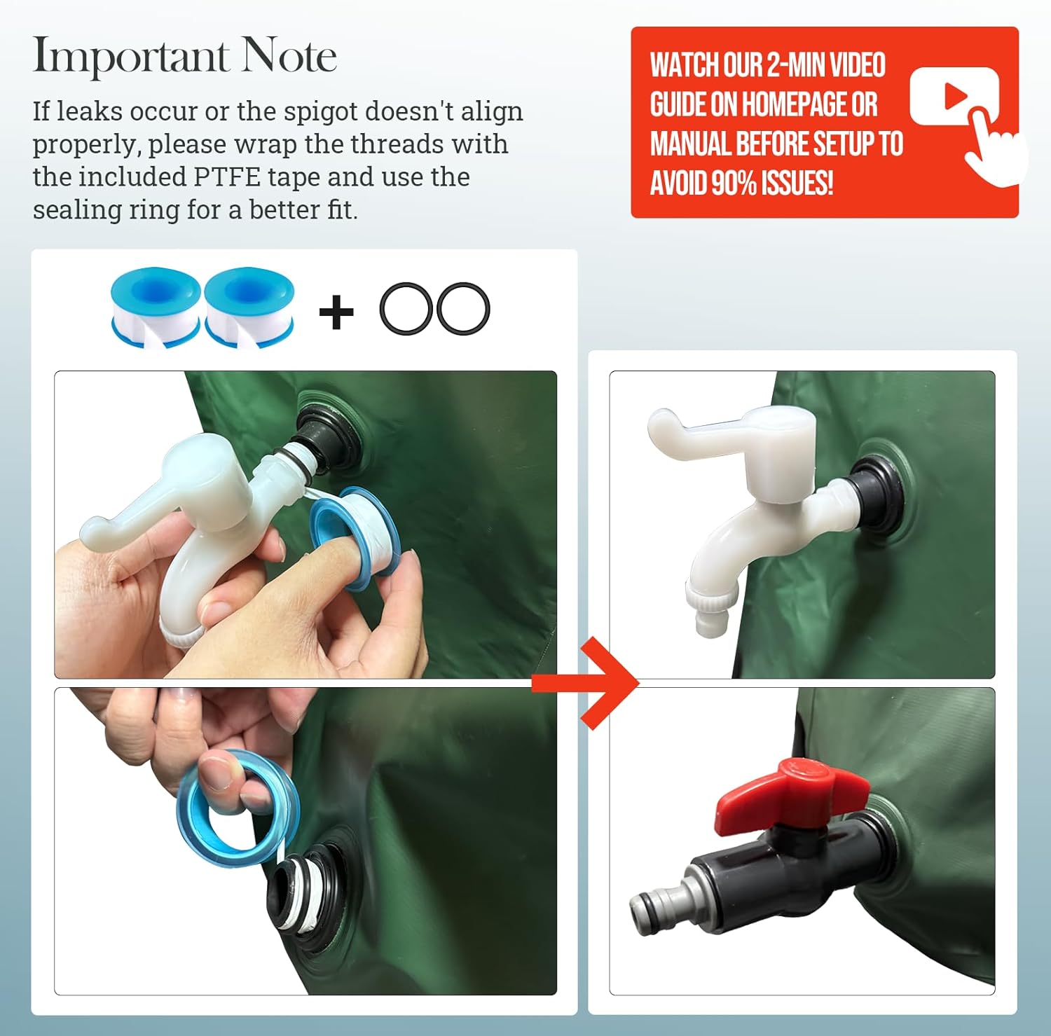 - 【Convenient & Easy to install】Thanks to the collapsible design, our rain barrel spigot kit can be stored in small places like cabinets or sheds when not in use. You can also put it in your car trunk for outdoor activities and farm irrigation, so you don't have to carry lots of heavy drinking water. Installation is easy and quick, with no special tools needed. Even first - time users in remote outdoor areas can set it up without trouble