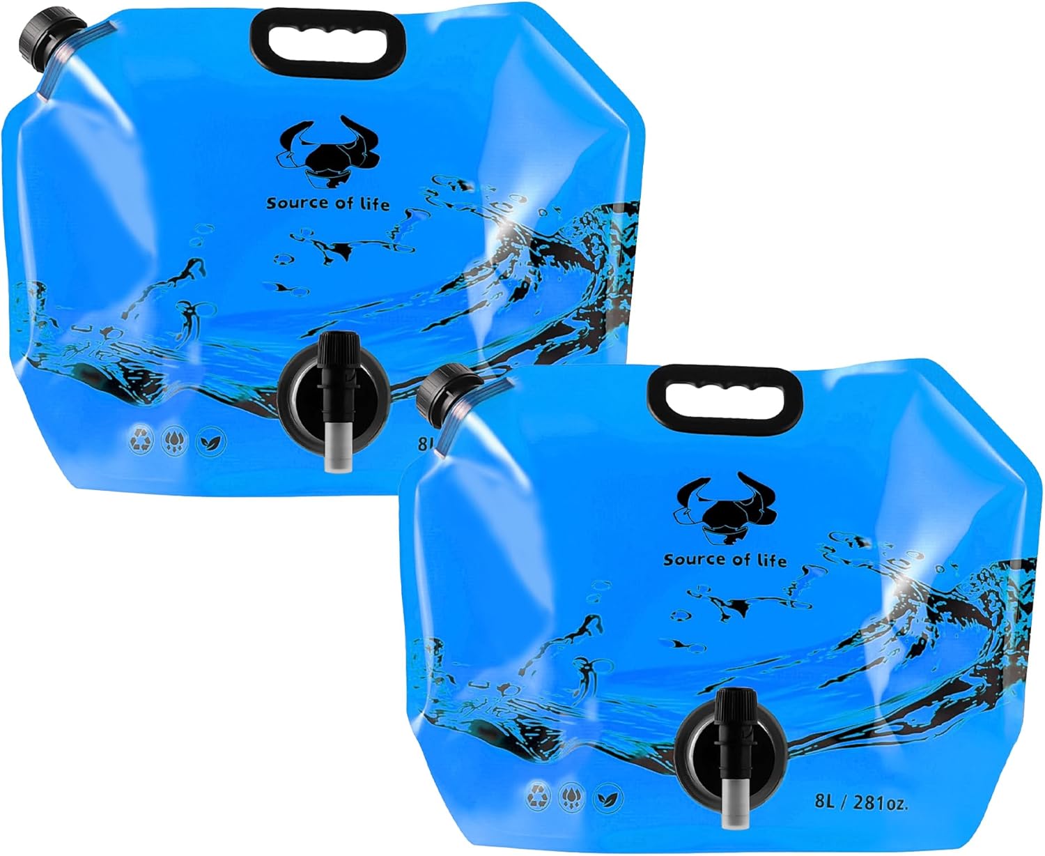 Collapsible 8L Water Storage Bag, BPA-Free Portable Folding Water Jug with Adjustable Faucet, Leakproof Emergency Water Bag for Camping, Hiking, Riding, Outdoor Sport (Blue, 2)