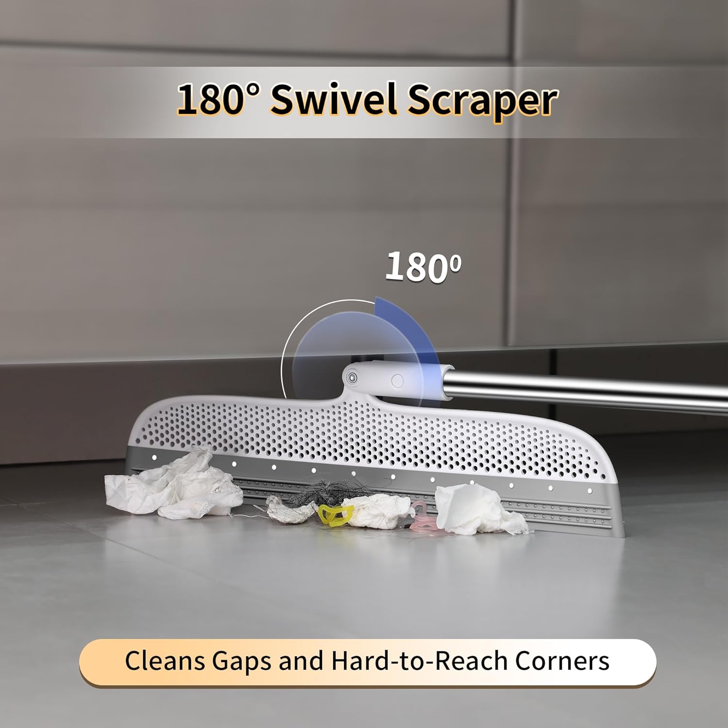 - 【3-in-1 Floor Warrior】Combines sweeping and floor squeegee functions in one rubber broom. Rust-proof stainless steel + thick TPR blades power through dust, hair, and spills. 15.7" wide head tackles dust, hair, and spills without static cling.