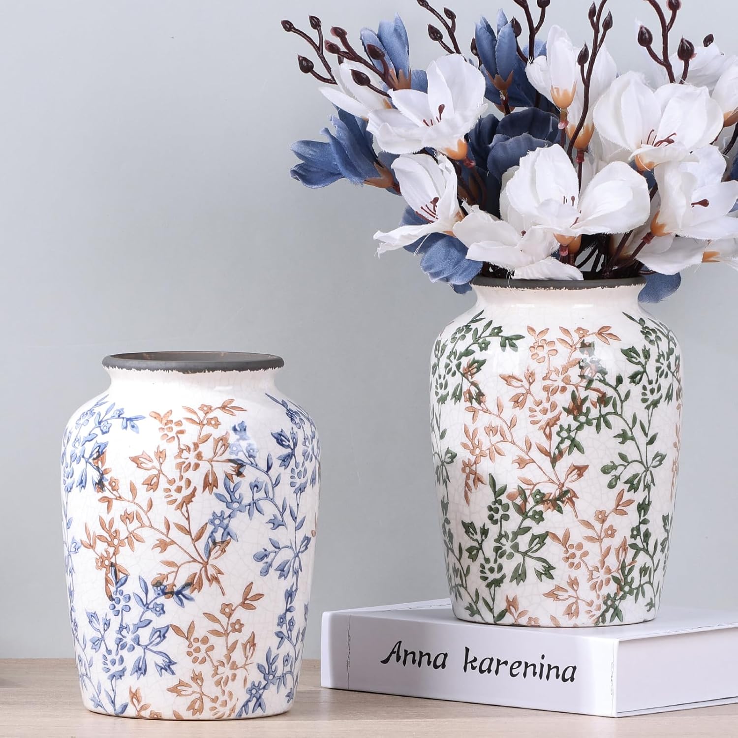 - vases for home decor: Decorate your home with this chinoiserie vase, making decoration simple, the vintage floral pattern gives charm and personality, while complementing a variety of interior styles from traditional to modern farmhouse, adding style to any room in your home.