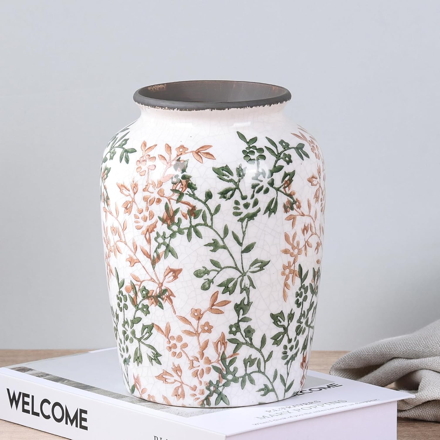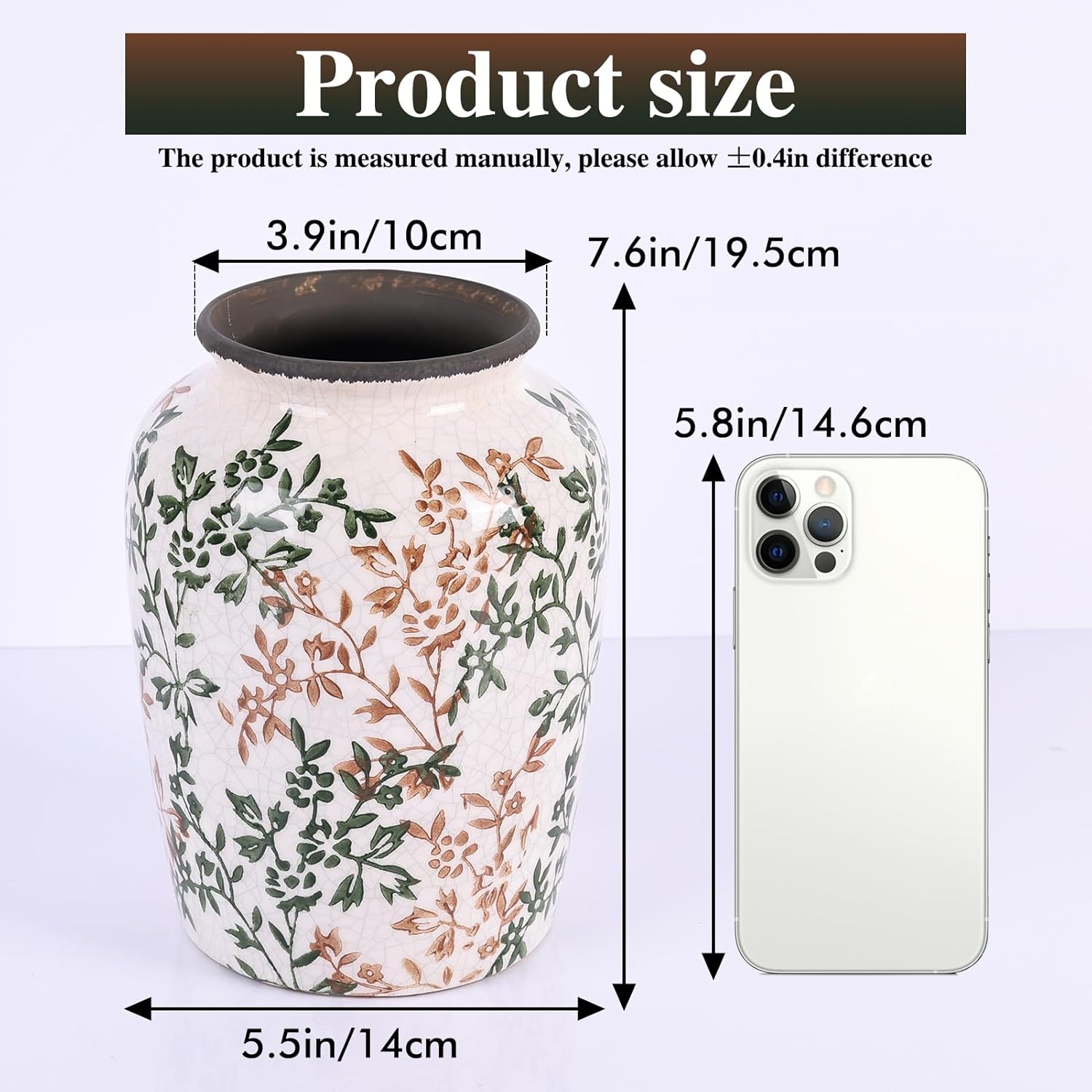 - Rustic flower vase: This porcelain vases measures approximately: 8.3 inches high, 5.5 inches in diameter/21*14 cm, can be used to display fresh or artificial flowers on shelves, mantels, tables or other surfaces, adding charm to living rooms, dining rooms, bedrooms, etc.