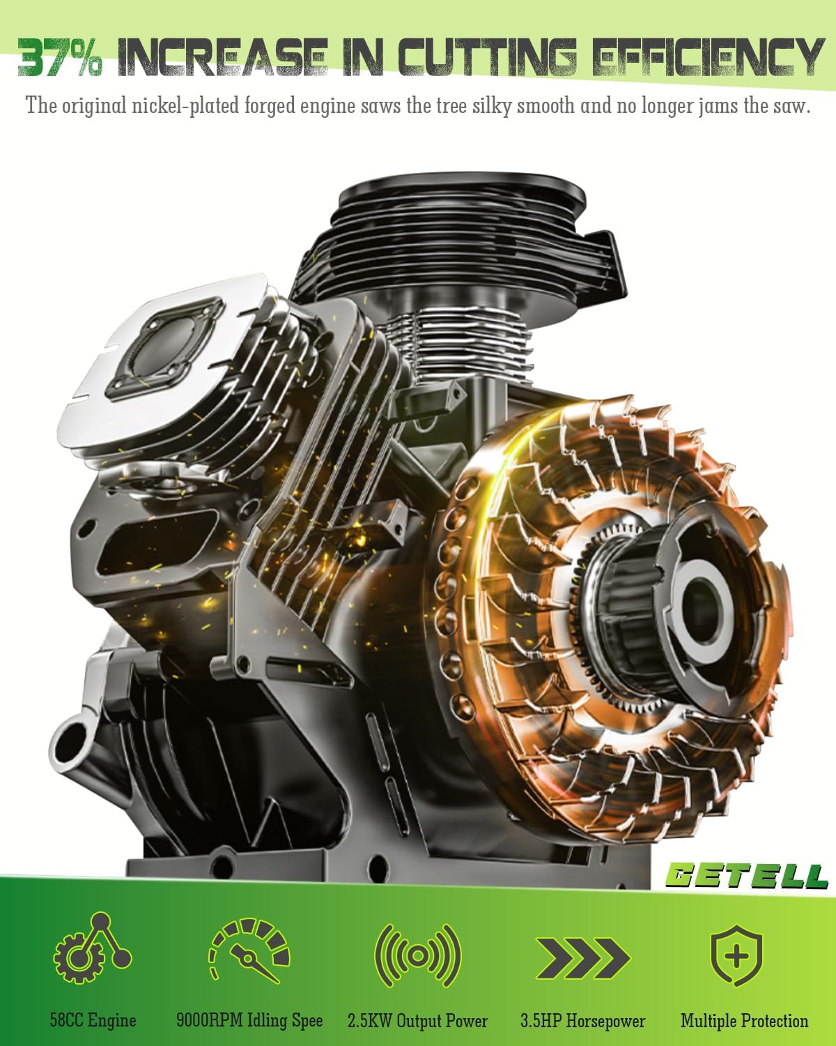 - Dominate Any Task with Professional Power: Imagine your toughest jobs melting away. The high-output 58cc engine delivers relentless cutting performance, slicing through thick logs and dense firewood with ease so you can finish projects faster