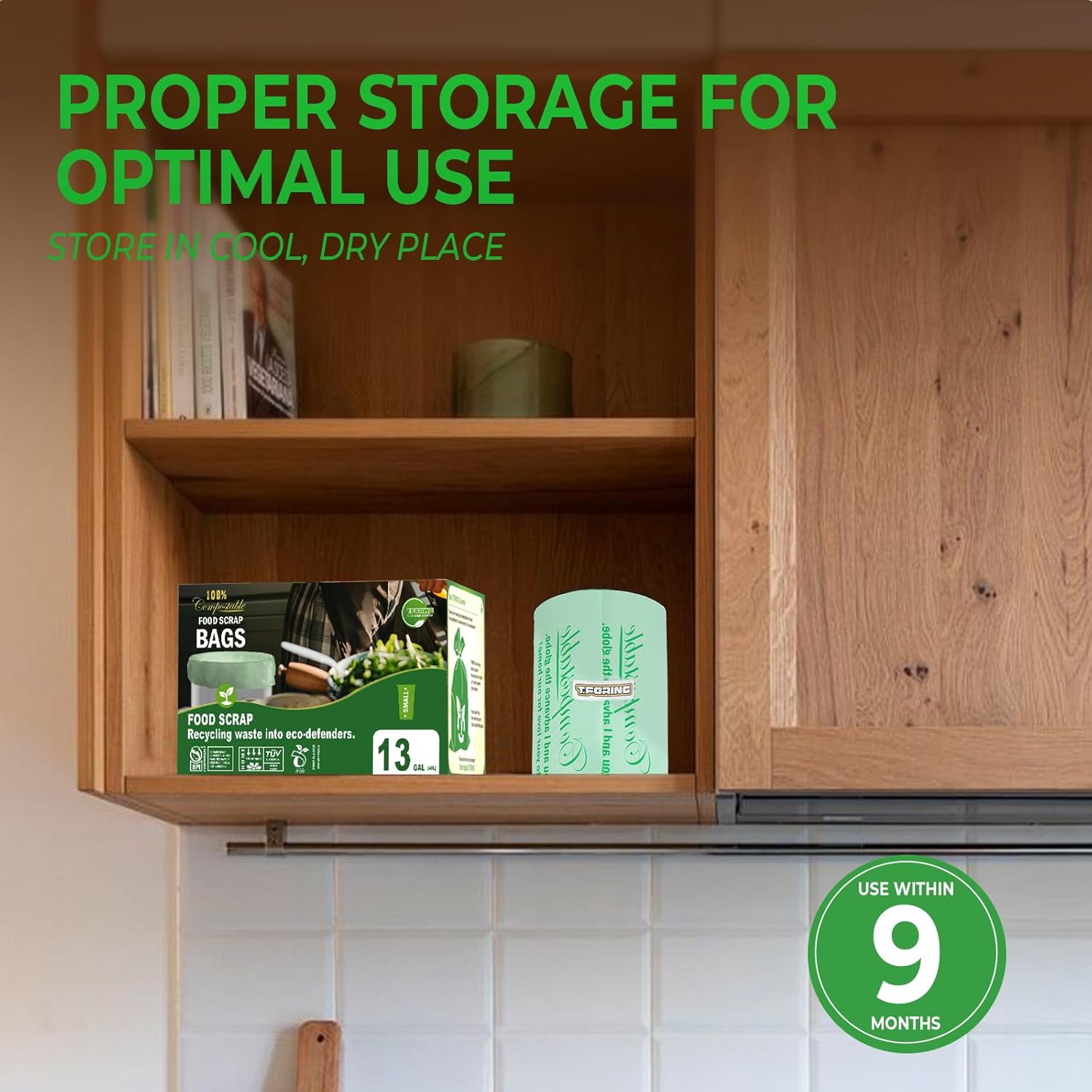 Tall Kitchen Compost Bags 13 Gallon, 49.5 Liter, 0.9 Mil,45 Count Compostable Trash Bags, Food Scrap Waste Bags, ASTM D6400, US BPI, CMA and Europe OK Compost Home Certified