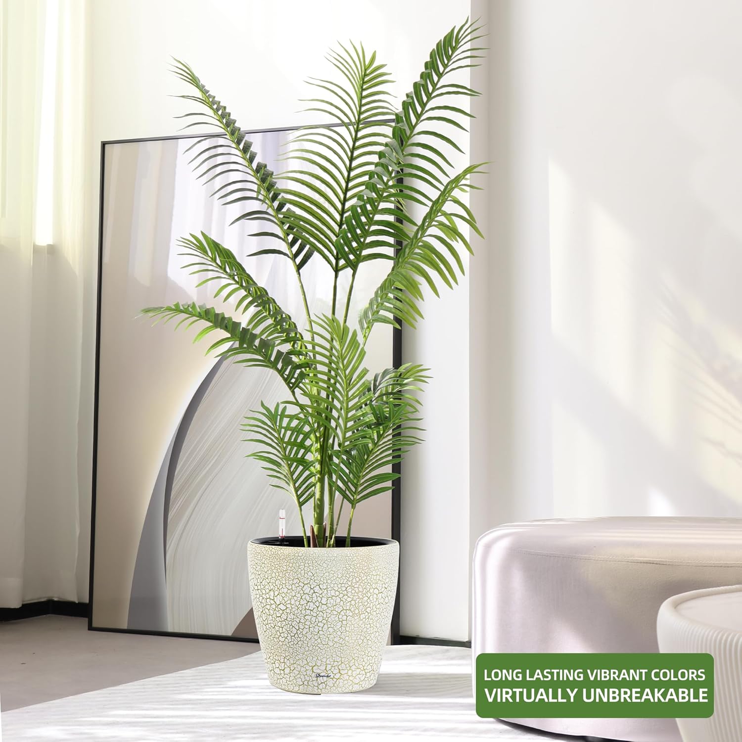 Dexceder 15x14 Self Watering Planter with Wheels Indoor Outdoor, Inner Pot Design, Thickened Large Floor Standing Flower Plant Pot with Water Level Indicator (White Gold Crackle)