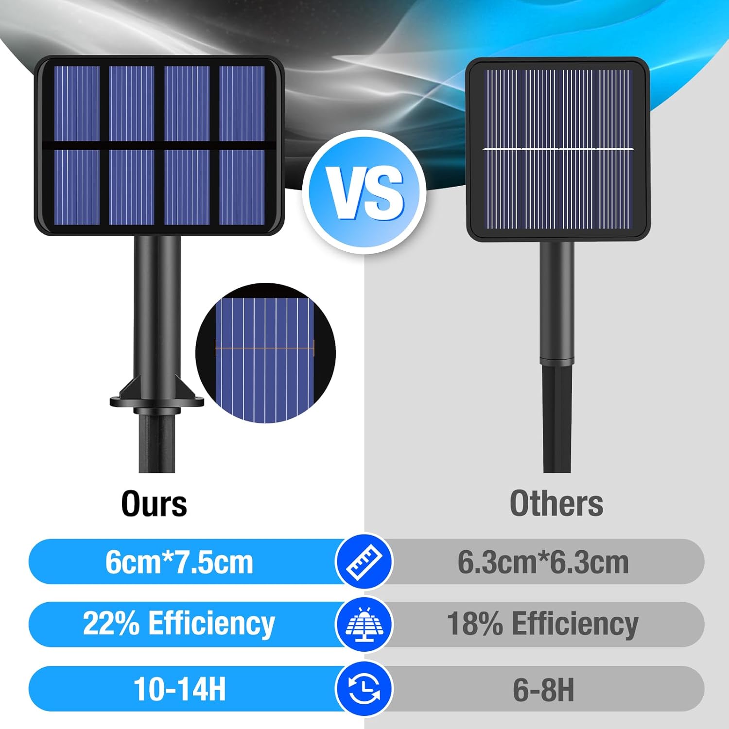 - Waterproof Design for All Weather: Light string and solar panel are IP65 waterproof to withstand any weather, either rain, sun, or snow. Safe for outdoor use, Don't worry about short circuits or bad weather damage (can't soak in water). Emit a blue white light after rain, romantic and beautify the yard