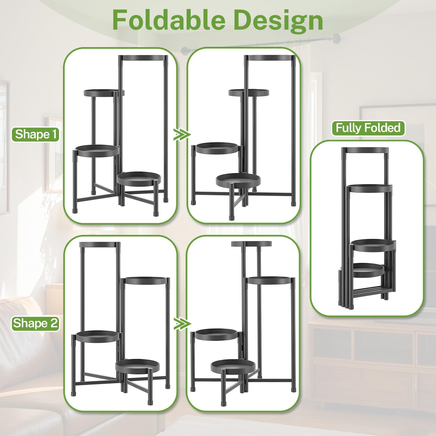 - Space-Saving Adjustable Design: The plant stand outdoor has the fixed center pole while outer legs rotate smoothly, letting you shape it to fit corners or straight spaces. It provides a flexible display that adapts easily and folds for convenient storage