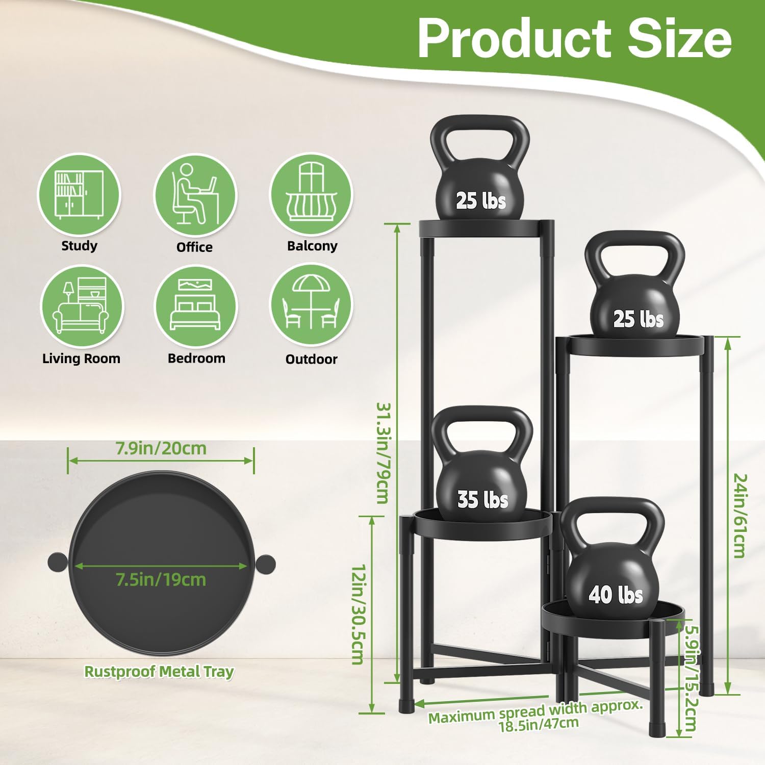 - 7.9-Inch Wide Trays with Rim: This tall plant stand features 7.9-inch round trays, suitable for pots up to 7.5 inches wide. Each tray is designed with raised edges that guard against spills and tipping, keeping your plants safe and steady