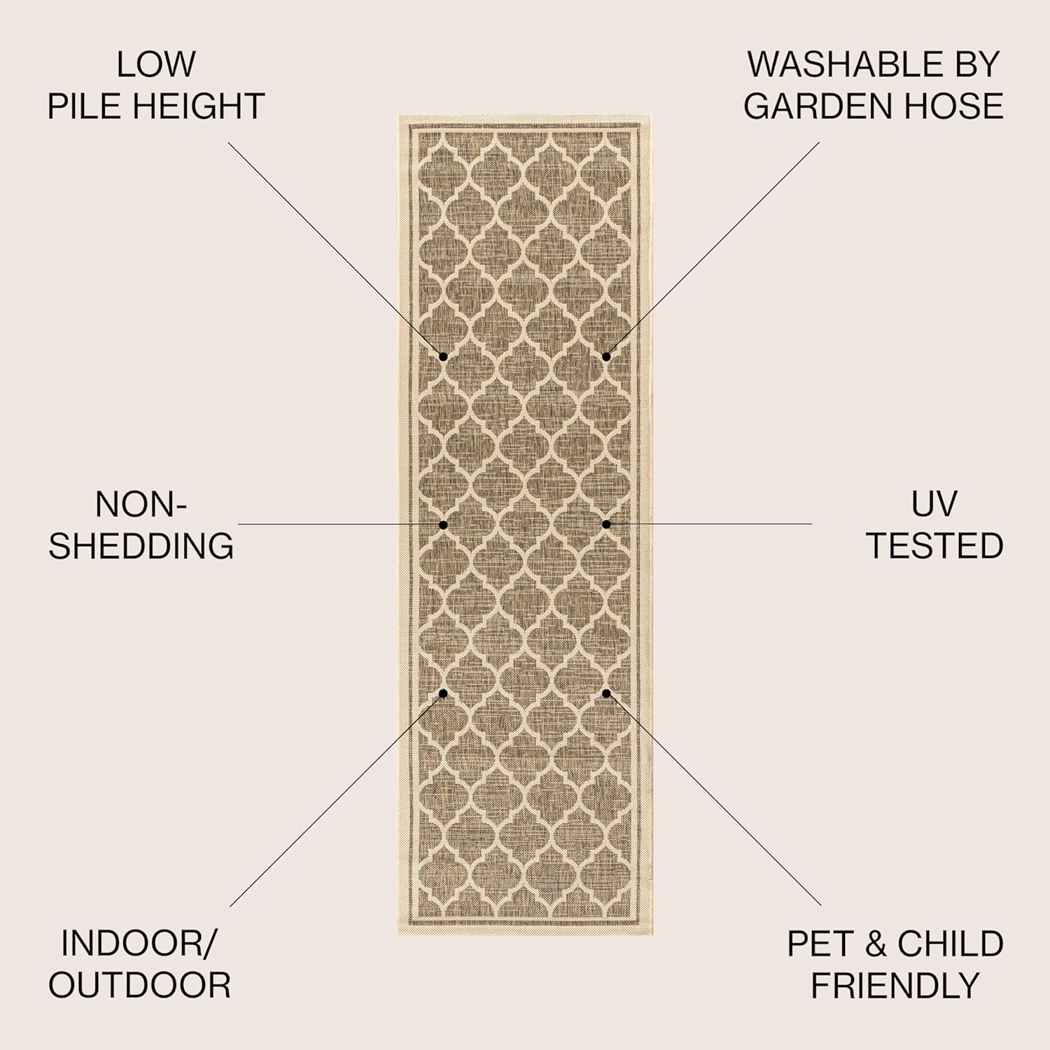 Eyely BMS109A-220 Santa Monica Trebol Moroccan Trellis Textured Weave, Pet Friendly, Non-Shedding, Stain Resistant, Easy-Cleaning, Brown/Beige, 2 ft. x 20 ft., Indoor/Outdoor, Runner Rug
