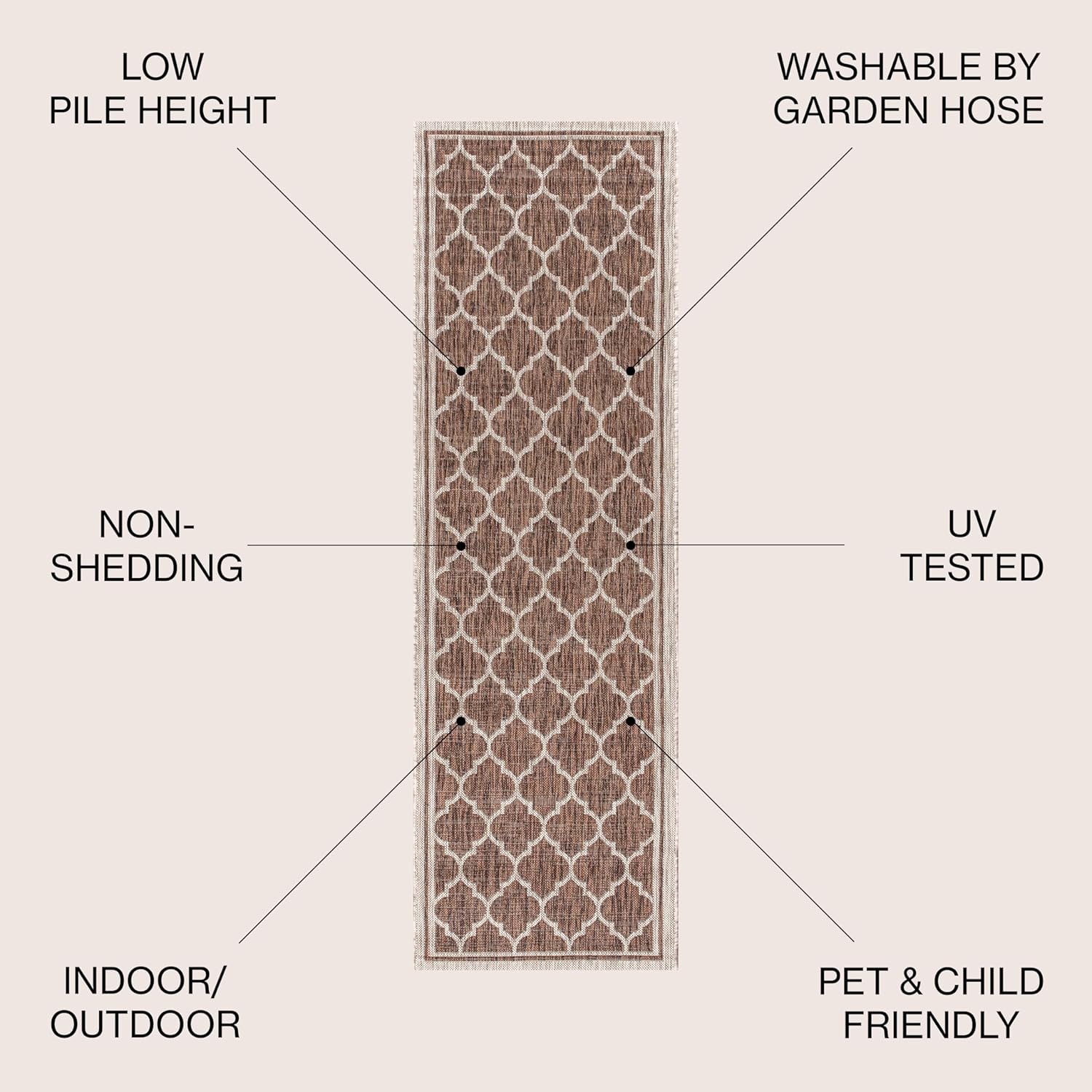 Eyely BMS109B-214 Santa Monica Trebol Moroccan Trellis Textured Weave, Pet Friendly, Non-Shedding, Stain Resistant, Easy-Cleaning, Espresso/Taupe, 2 ft. x 14 ft., Indoor/Outdoor, Runner Rug