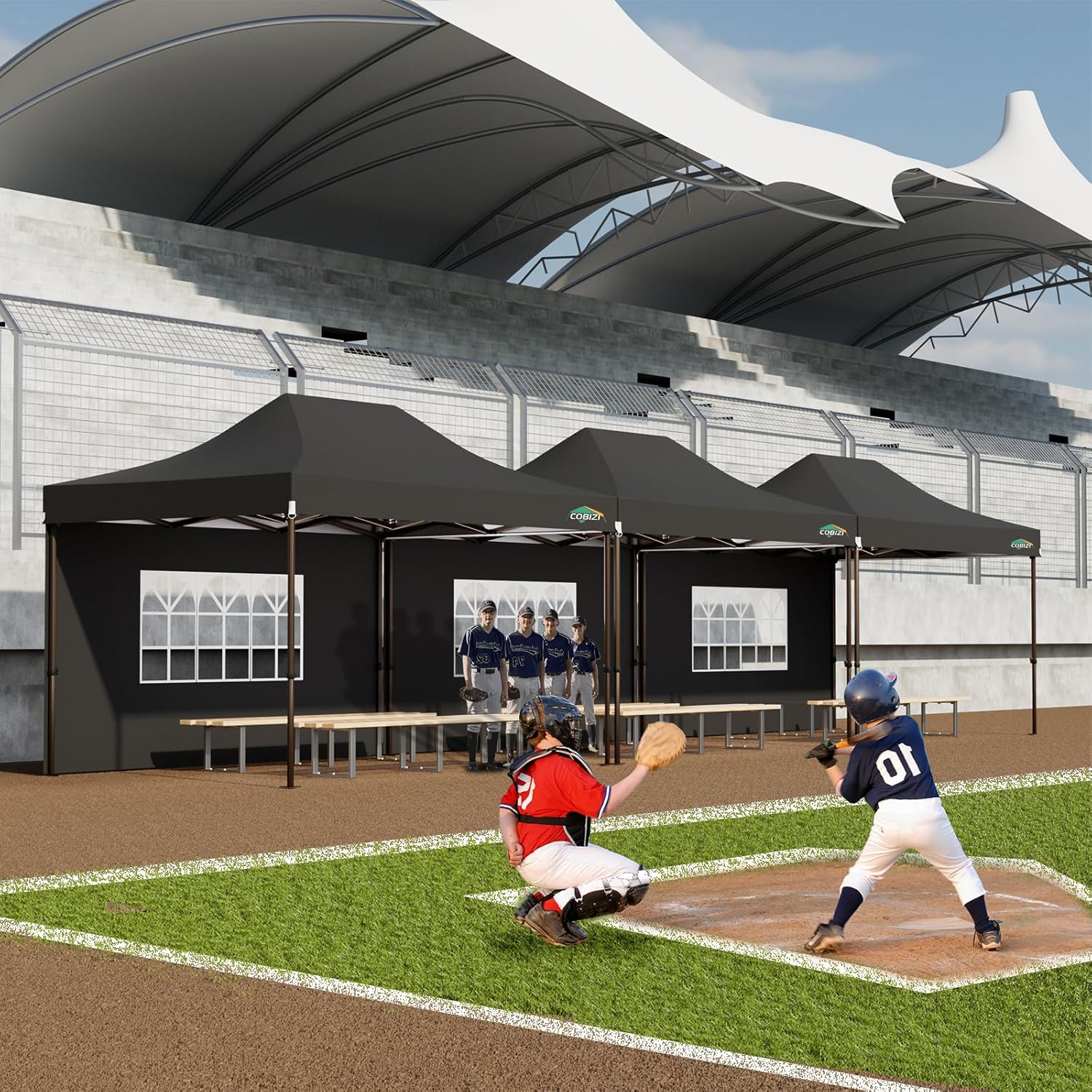 COBIZI 10x15 Pop Up Canopy Tent Heavy Duty with Sidewall, Commercial Outdoor Easy Pop Up Gazebo for Party Wedding All Weather Waterproof UV 50+ with Roller Bag(Leg Upgraded),Black