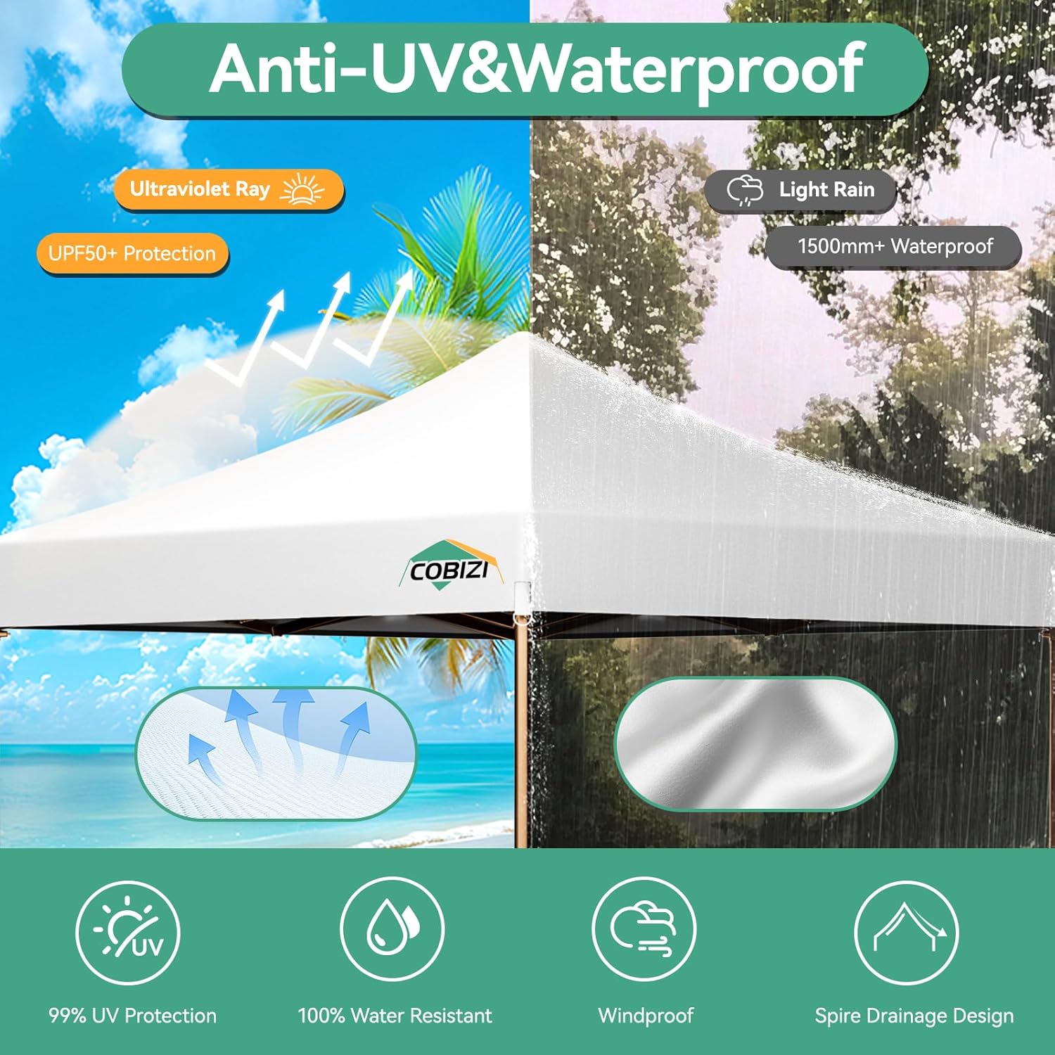 COBIZI 10x15 Pop Up Canopy Tent Heavy Duty Without Sidewall, Commercial Outdoor Easy Pop Up Gazebo for Party Wedding All Weather Waterproof UV 50+ with Roller Bag(Leg Upgraded),White