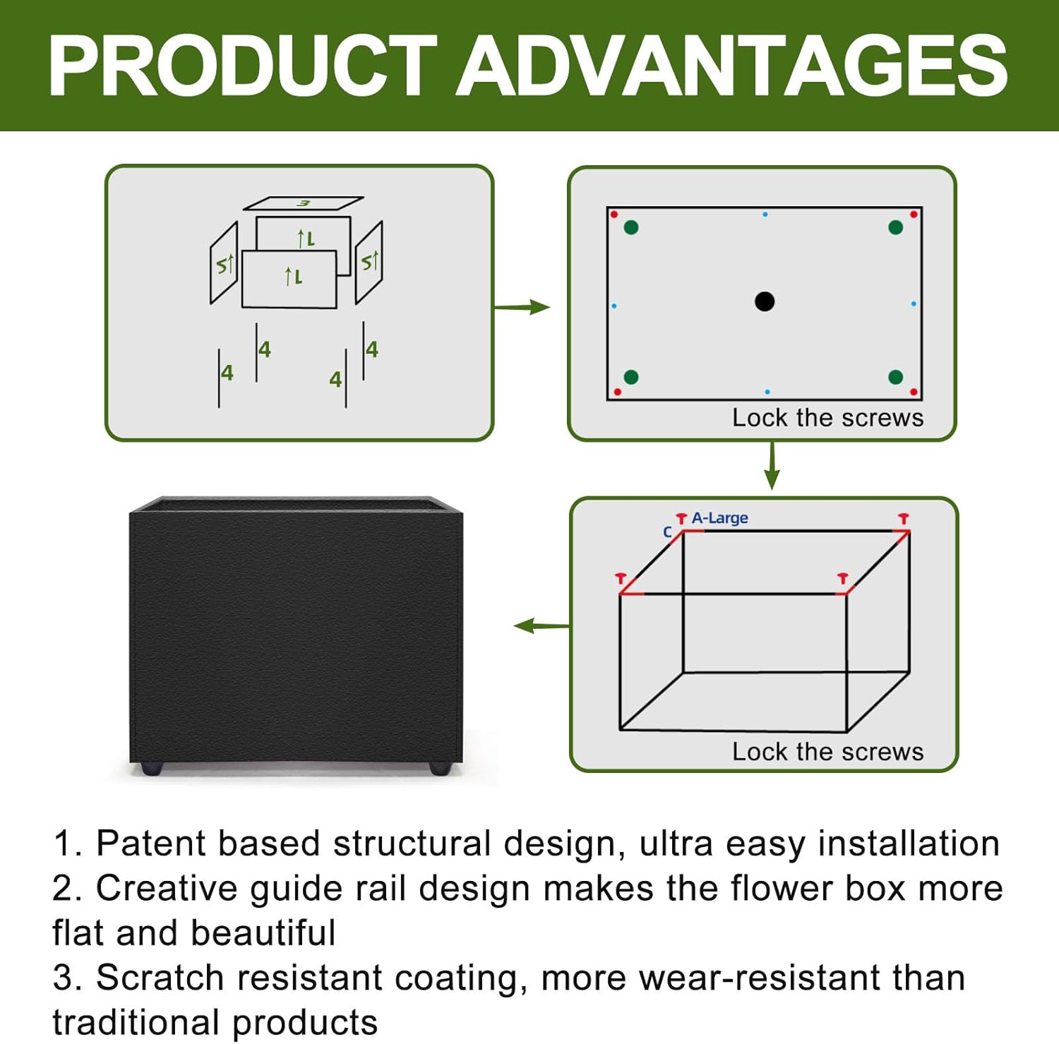 - 【OPTIMAL DRAINAGE SYSTEM】Equipped with pre-drilled drainage holes, this planter box ensures efficient water management, preventing the risk of overwatering your plants.