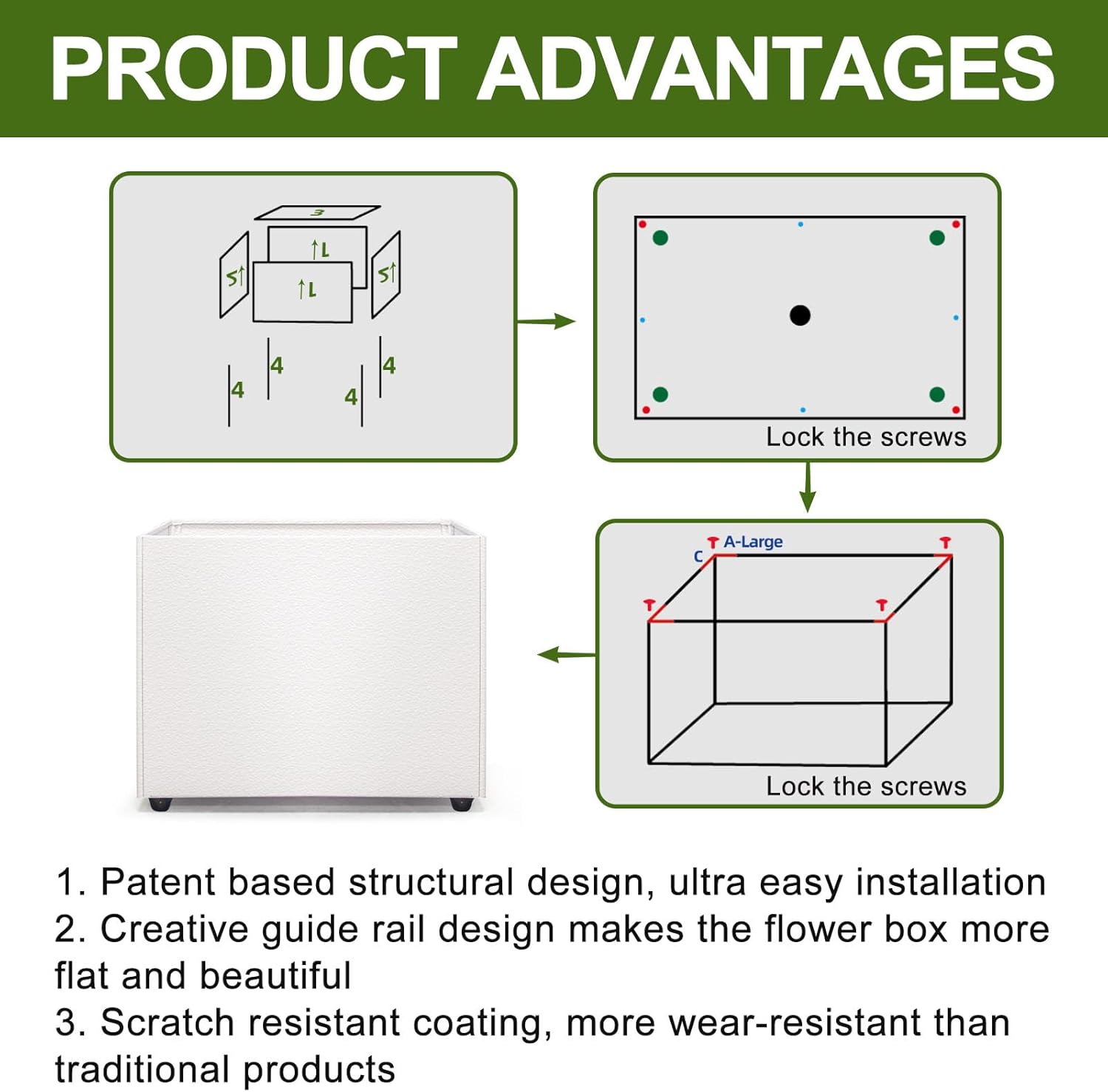 - 【OPTIMAL DRAINAGE SYSTEM】Equipped with pre-drilled drainage holes, this planter box ensures efficient water management, preventing the risk of overwatering your plants.