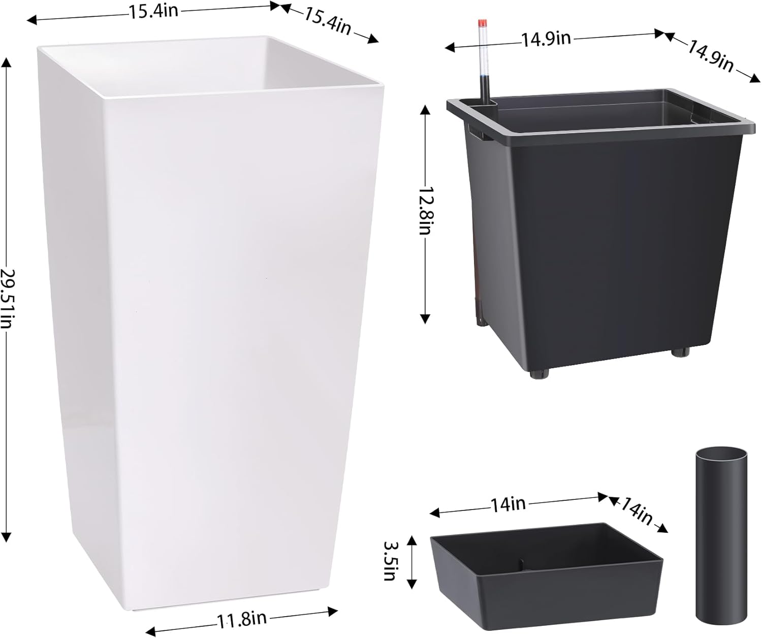 - Automic Watering System: Each tall black planters comes with built-in drainage holes and a sink to ensure that your greenery absorbs water smoothly and minimizes root rot. When the water level is low, the automatic watering system kicks in to provide your plants with the necessary moisture with minimal effort