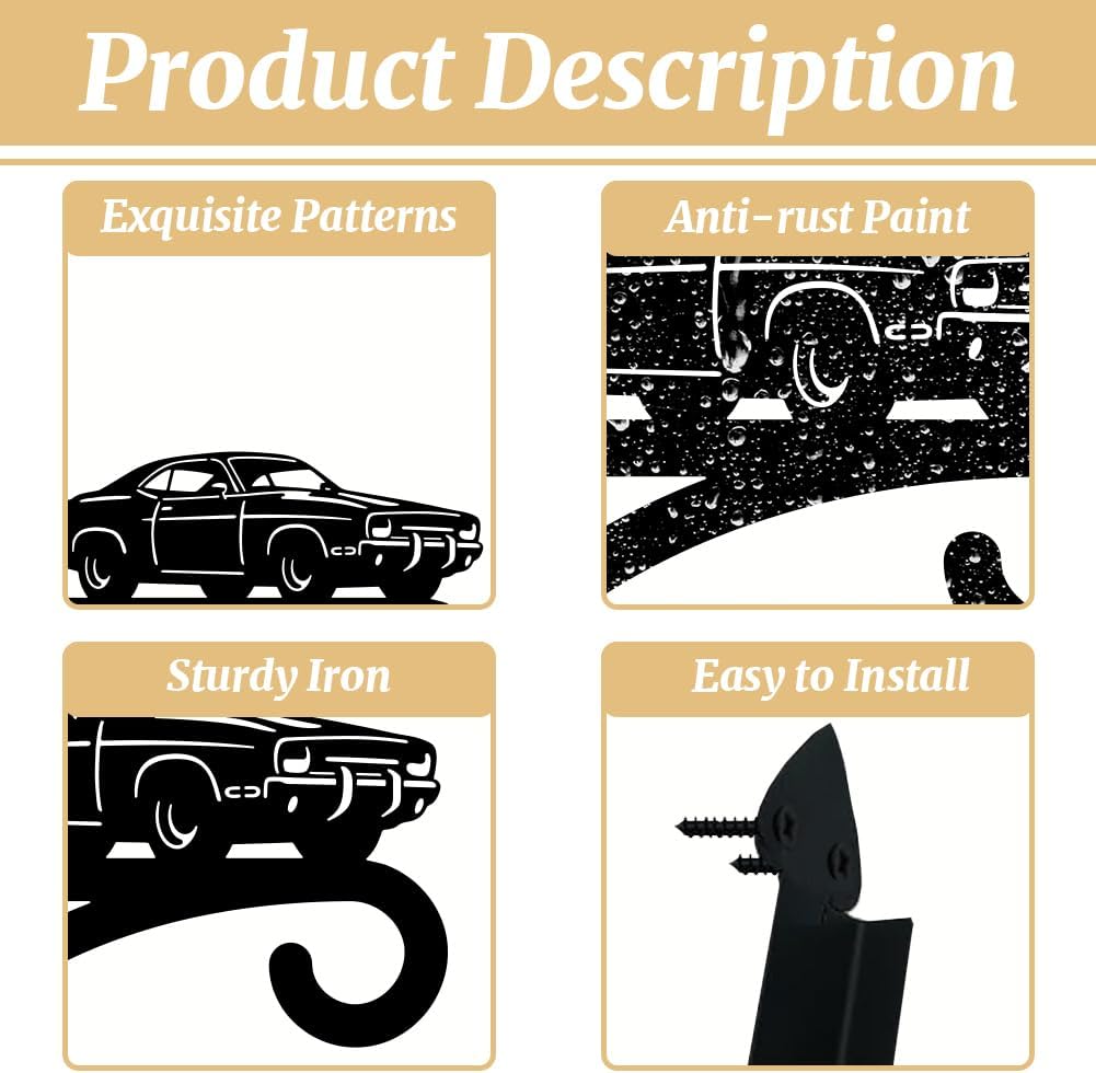 peacoblue Iron Plant Hangers Hooks for Outdoor Indoor Hanging Plants Flower Fern Pots Lantern Bird Feeder,11.8"x13.6" Weather Resistant Metal Wall Holder for Porch Garden Farmhouse(Retro Car)