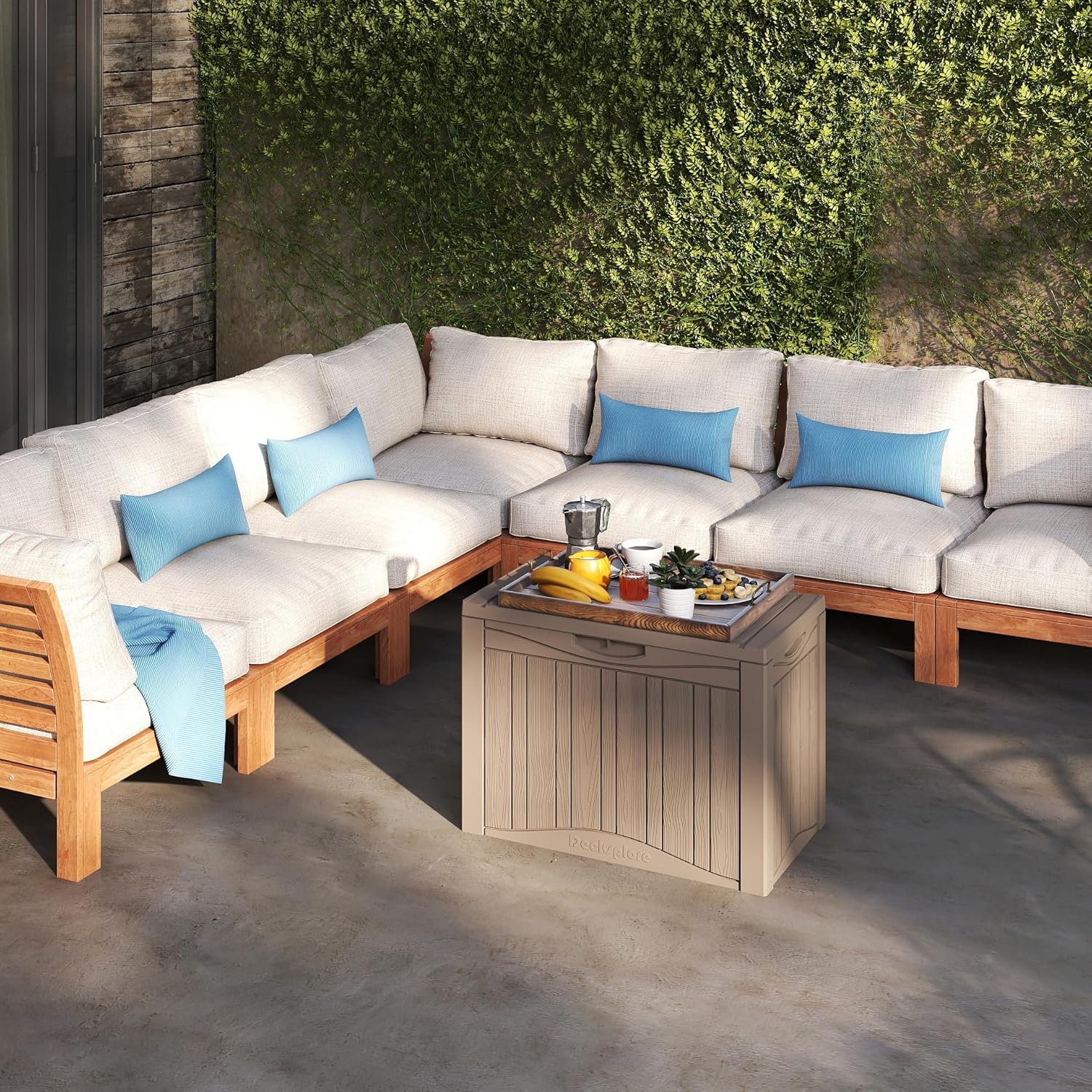 - Small Patio Needs. Whether you need extra space for gardening tools, seat cushions, or outdoor gear, this small deck box has you covered. Its lightweight yet sturdy design makes it easy to move around as your storage needs change.