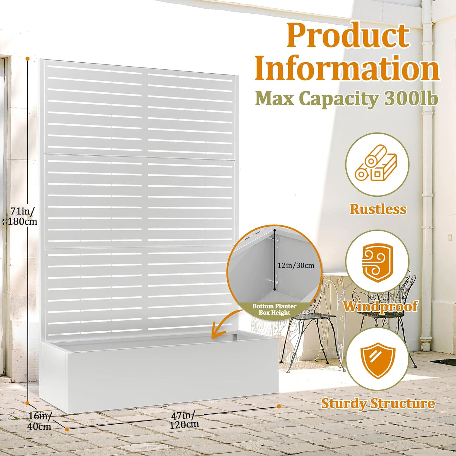 - 🛡️【Outdoor Privacy Screen & Metal Planter Box with Trellis】Use this metal planter box with trellis to create a natural divider on your patio, balcony, or yard. It’s more than just a garden raised bed for climbing plants—it’s also a beautiful metal planter with privacy screen that offers shade and separation. The sleek black frame and vertical lines of this metal planter box with trellis make it both decorative and practical.