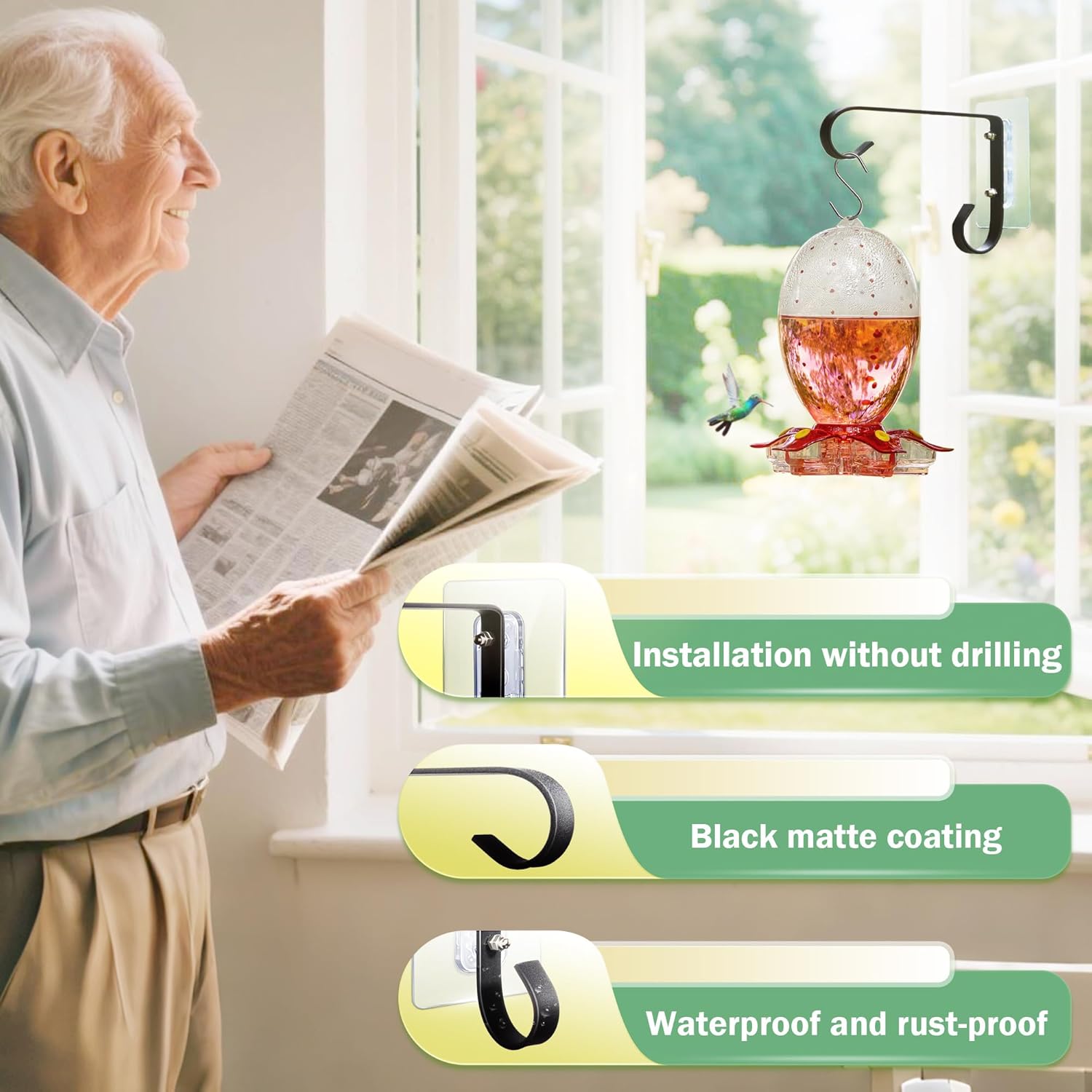- Versatile Applications of Hook: Not only suitable for hanging window hummingbird feeders, but also perfect for hanging wind chimes, garlands, plants, decorative artworks, etc., meeting various household decoration needs. Whether you're using it as a bird feeder window or for other decorative purposes, this hook provides both functionality and aesthetic appeal.