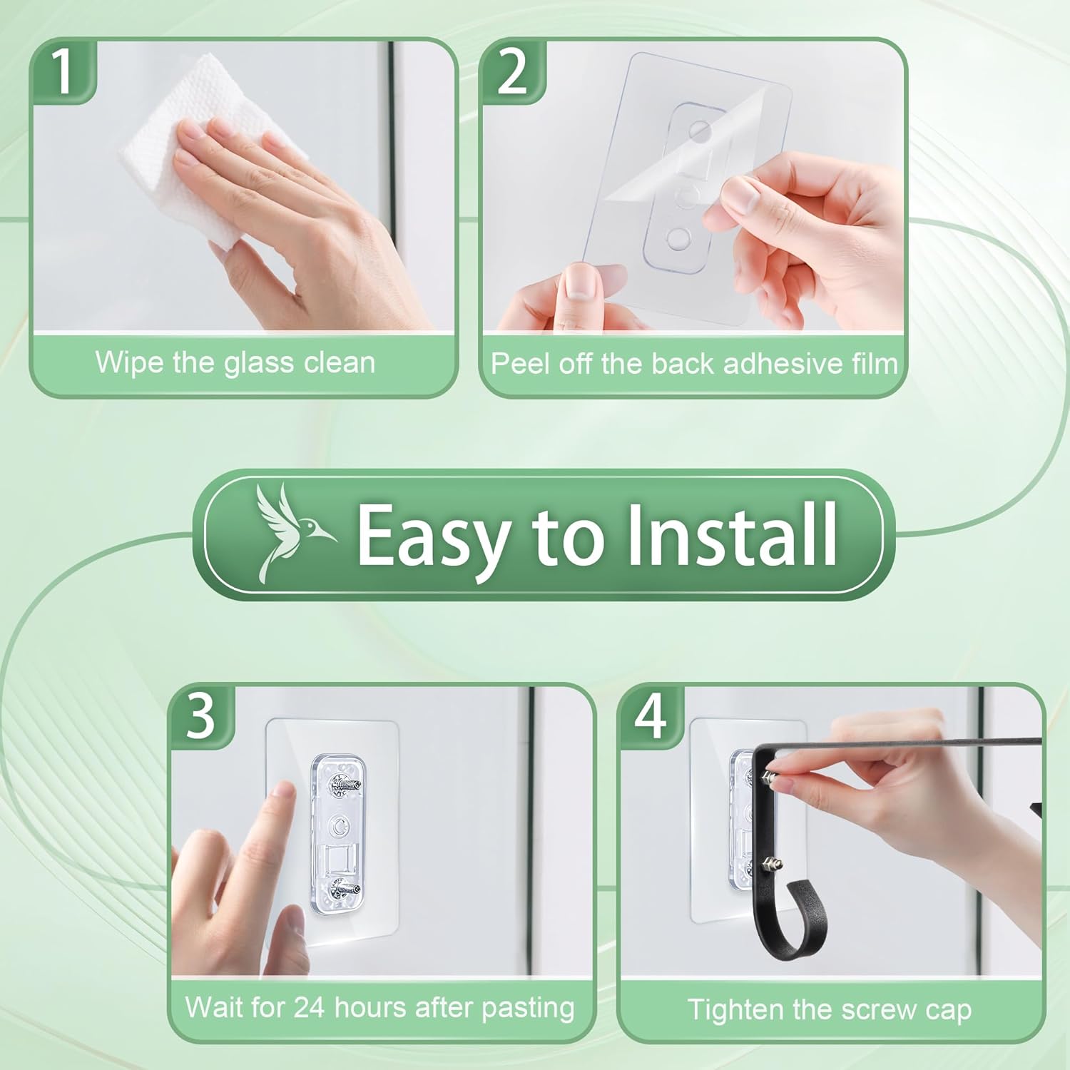 - Flexible Installation of Hook: Two installation options are available for the bird feeder attached to window: traceless adhesive installation or screw installation. After using the traceless adhesive, it is recommended to wait 24 hours before hanging the hooks for firmer adhesion, ensuring your window bird feeders for outside remain securely in place.