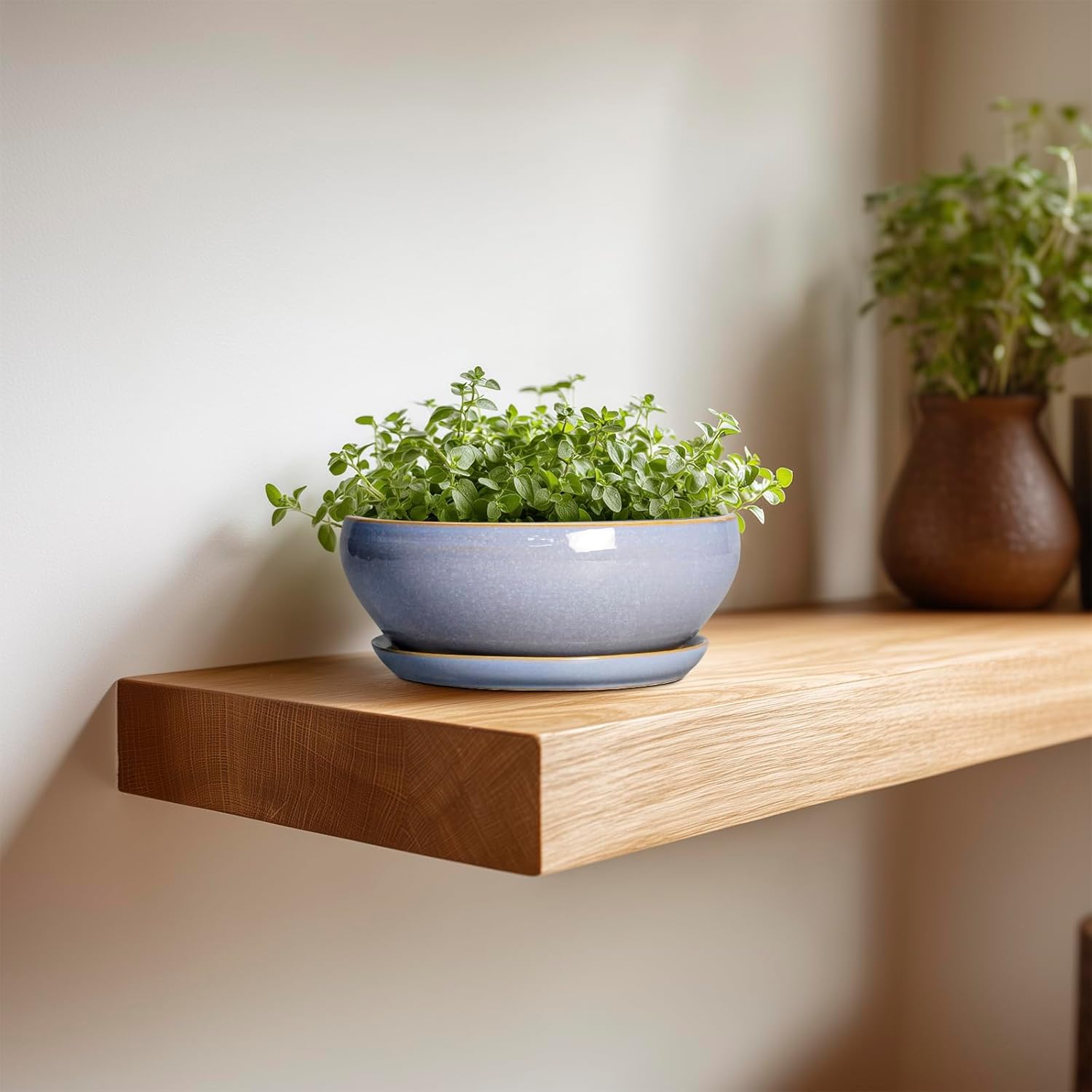 SQOWL Bonsai Tree Pots Small - 6 Inch Ceramic Succulent Planters with Drainage Hole and Saucer, Shallow Pot for Indoor Outdoor, Round Cactus Planters, Living Room Decor, Gifts for Plant Lover, Blue