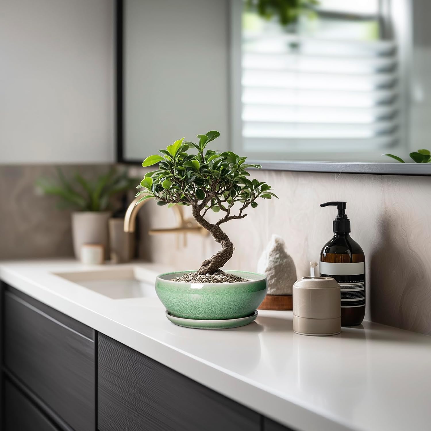 - Plant Pots with Drainage Hole and Ceramic Saucer: The bottom of the bonsai tree pots has drainage hole and a matching ceramic plant saucer to collect excess drainage and soil overflow, keeping plant root cared and your indoor tidy
